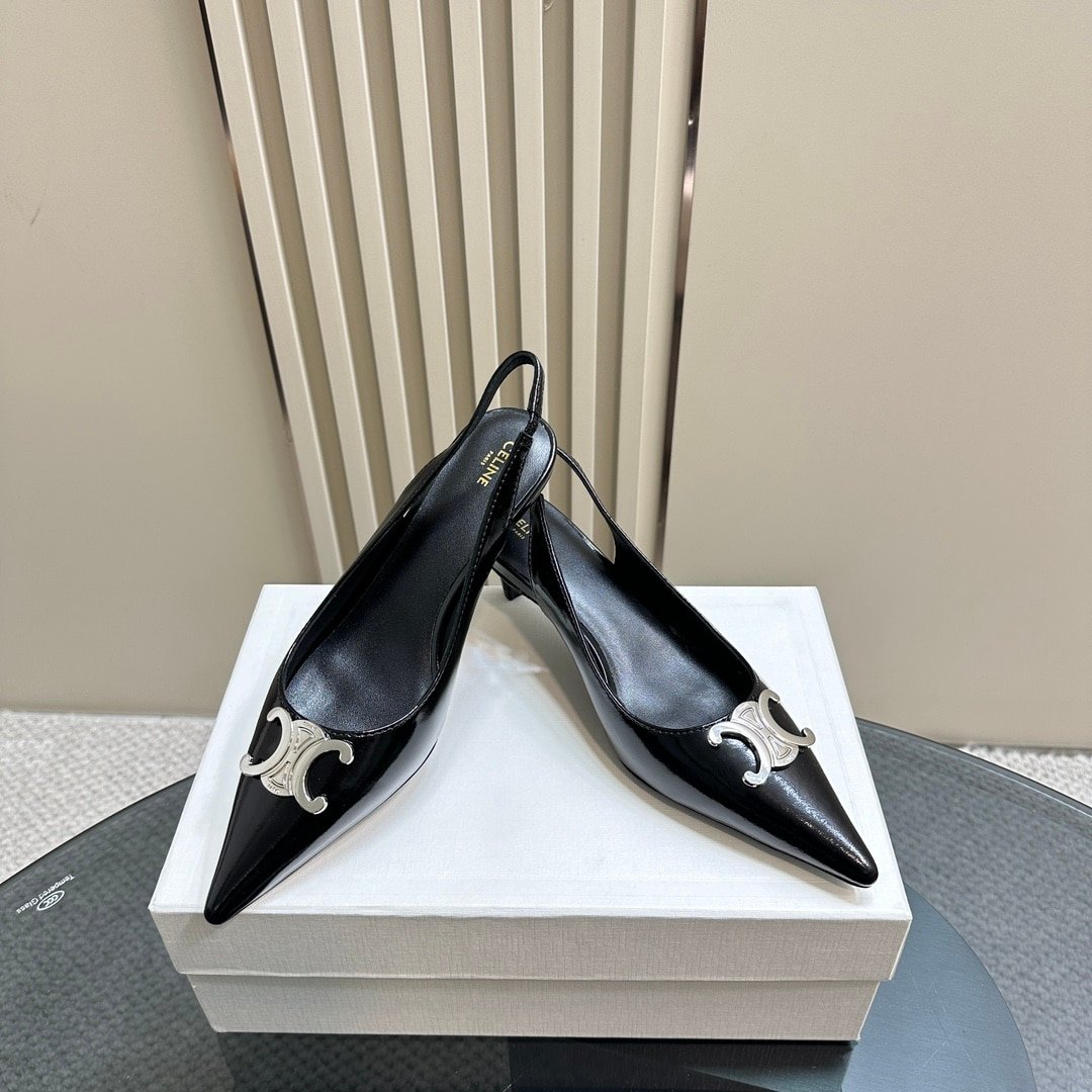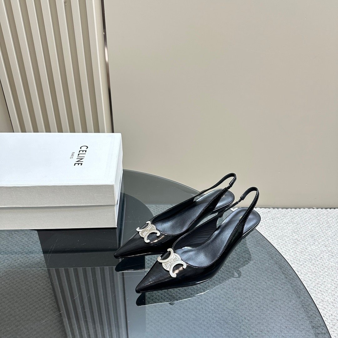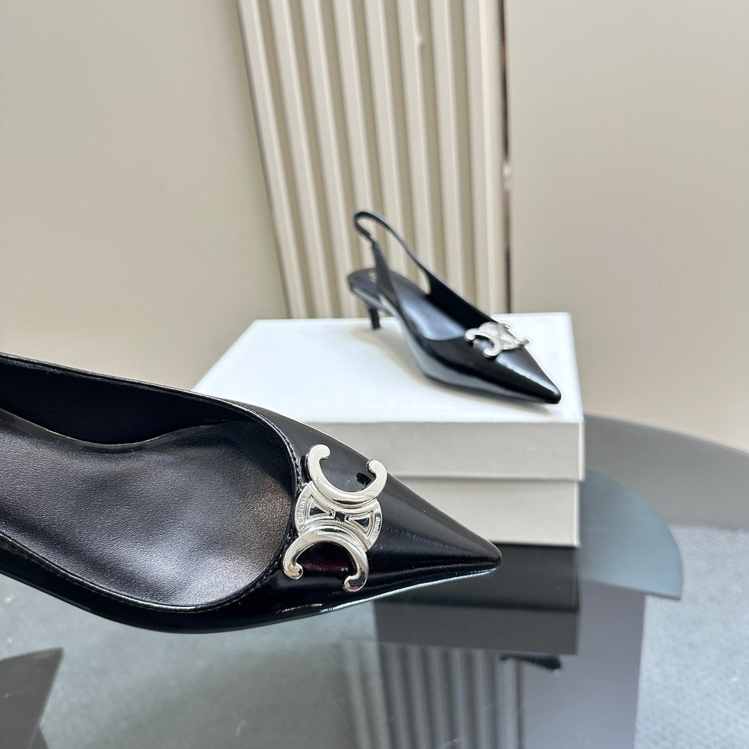 Celine Alma Triomphe Slingback In Glossy Calfskin Black 356834371C 38No