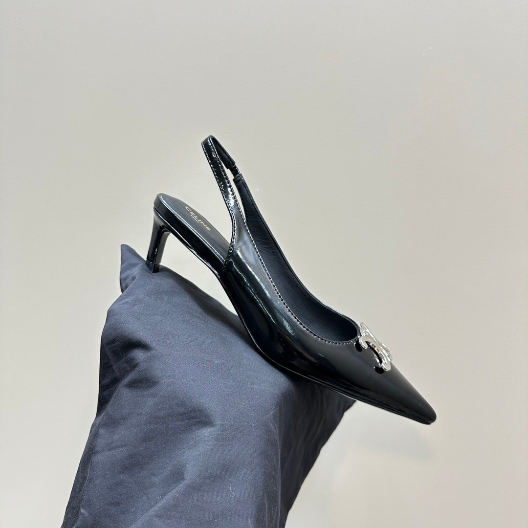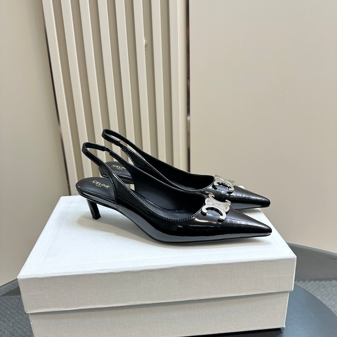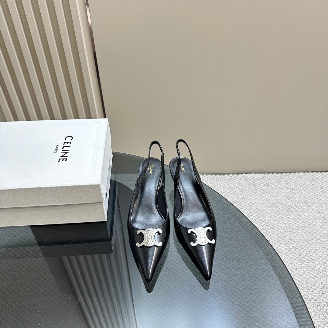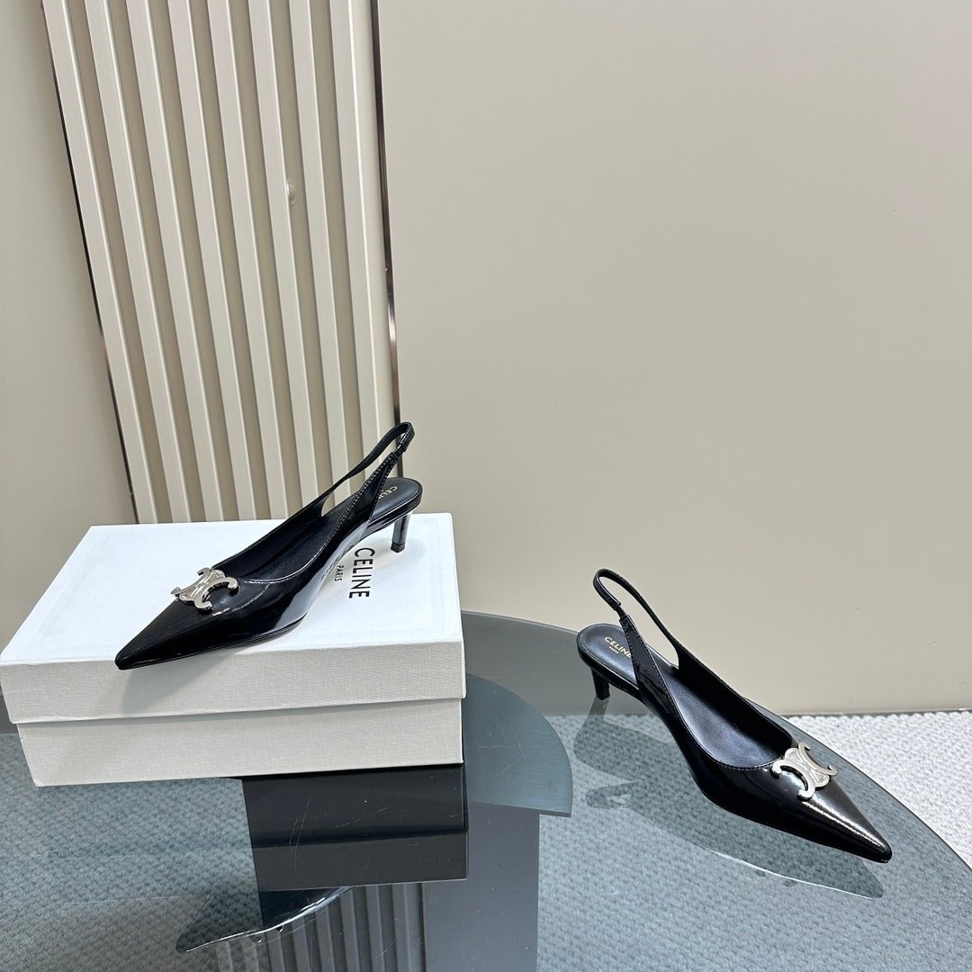 Celine Alma Triomphe Slingback In Glossy Calfskin Black 356834371C 38No