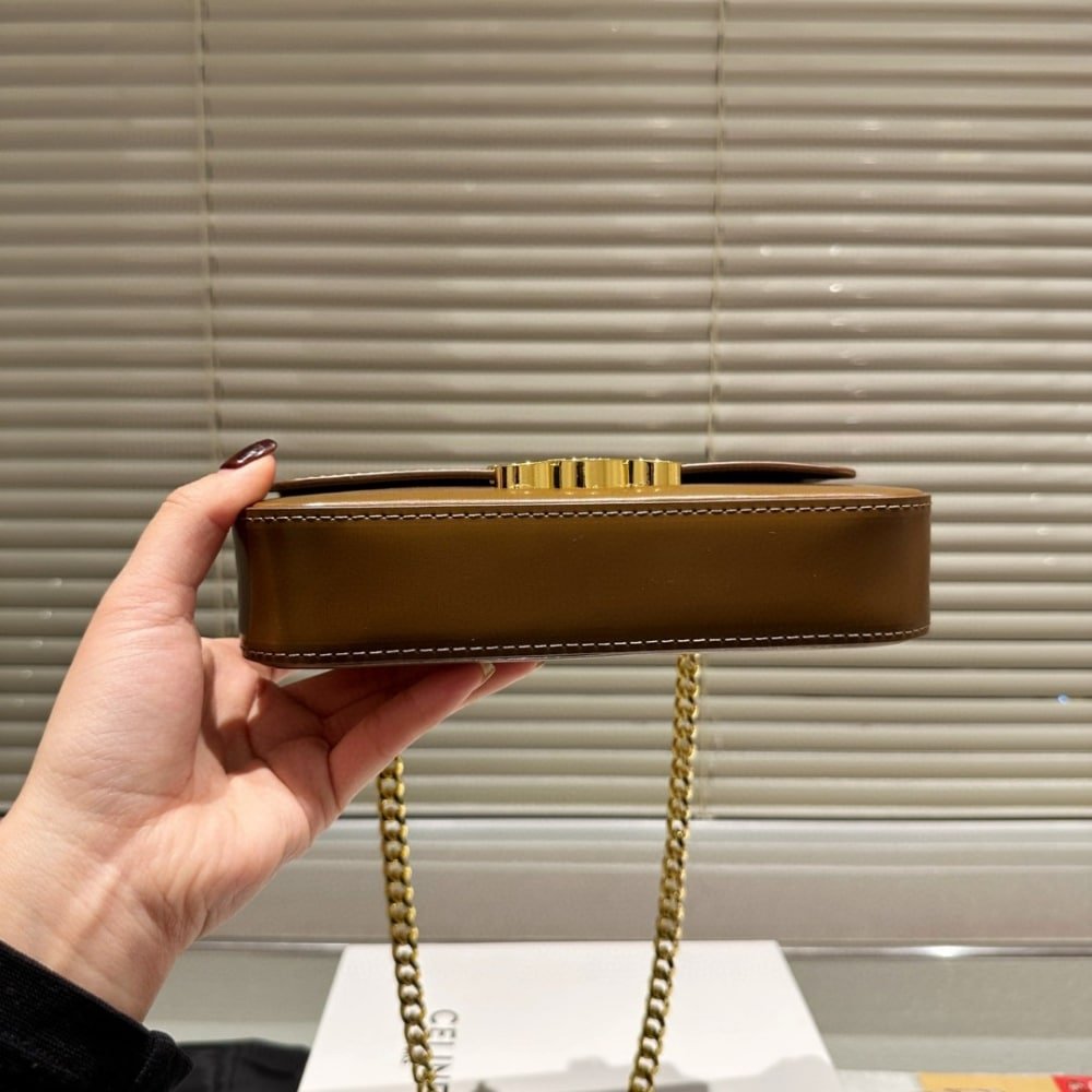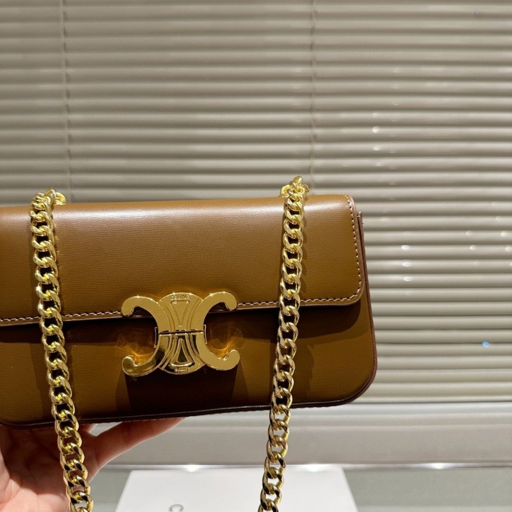 Celine Chain Triomphe In Shiny Shoulder Bag Silver Golden Brown 20Cm