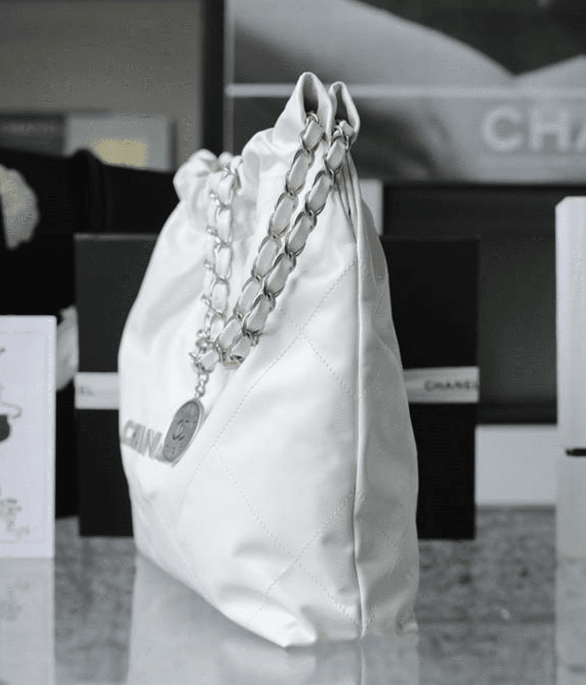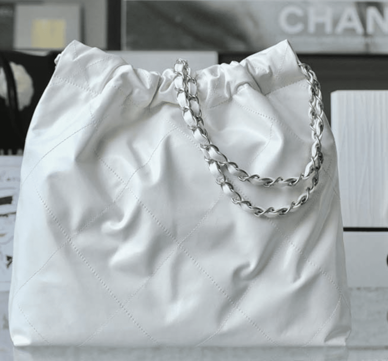 Be the first to review “Chanel 22 Handbag White 42Cm As3261 With Silver” Cancel reply