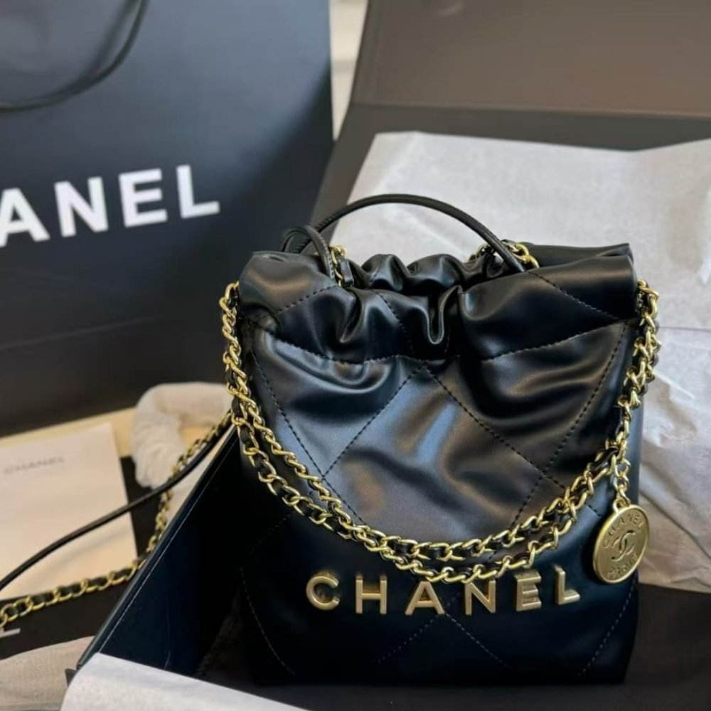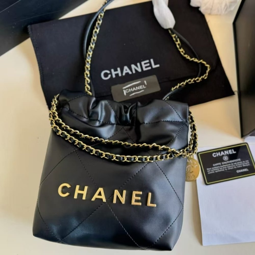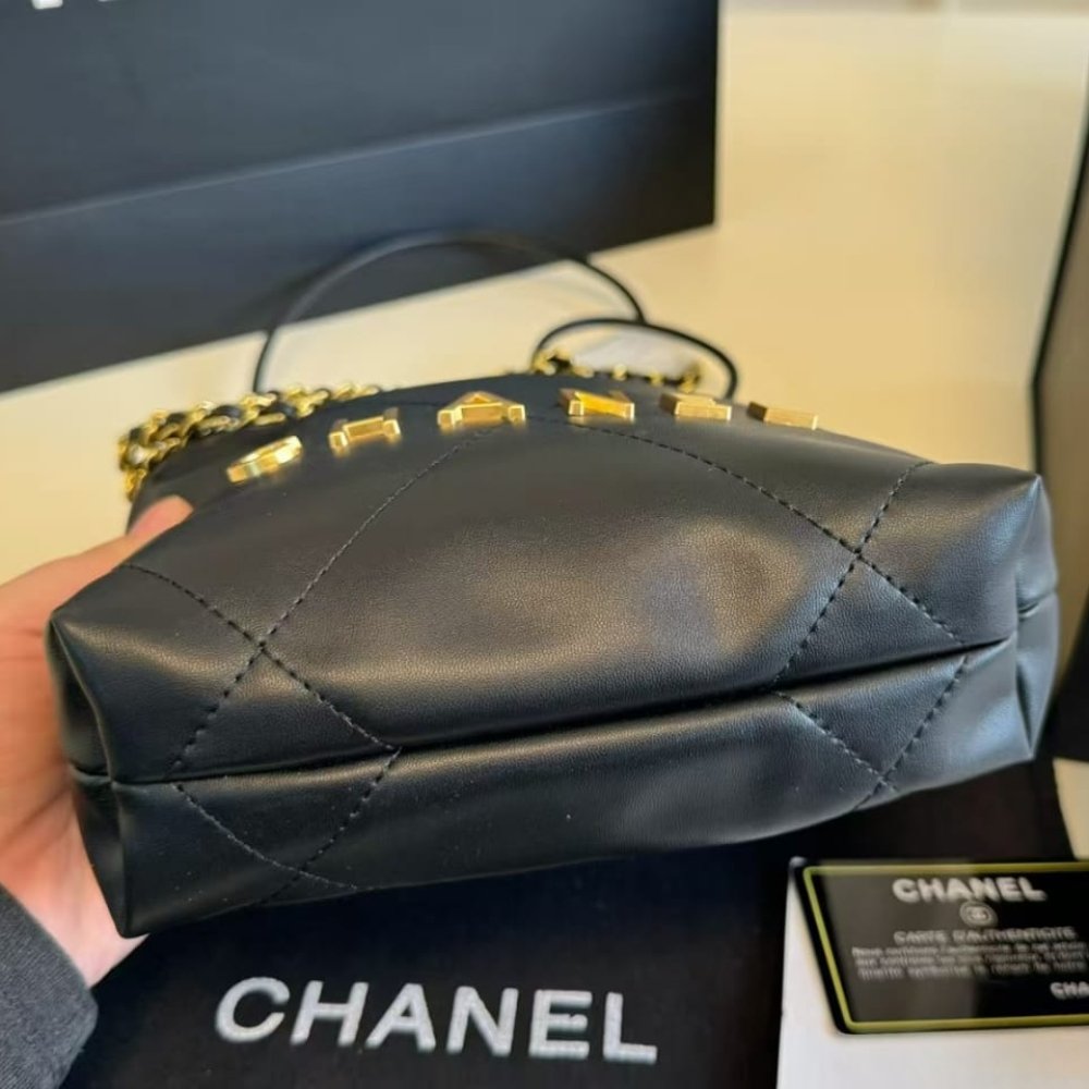Chanel 22 Mini Handbag Shiny And Gold Tone Metal Black 20cm AS3980 B19059 94305