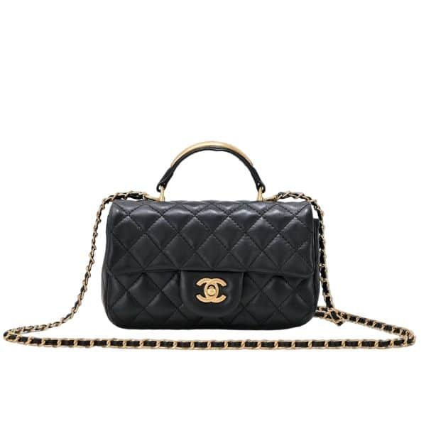 Chanel 22B Flap Bag With Gold Hardware Top Handle Black 21Cm As2431