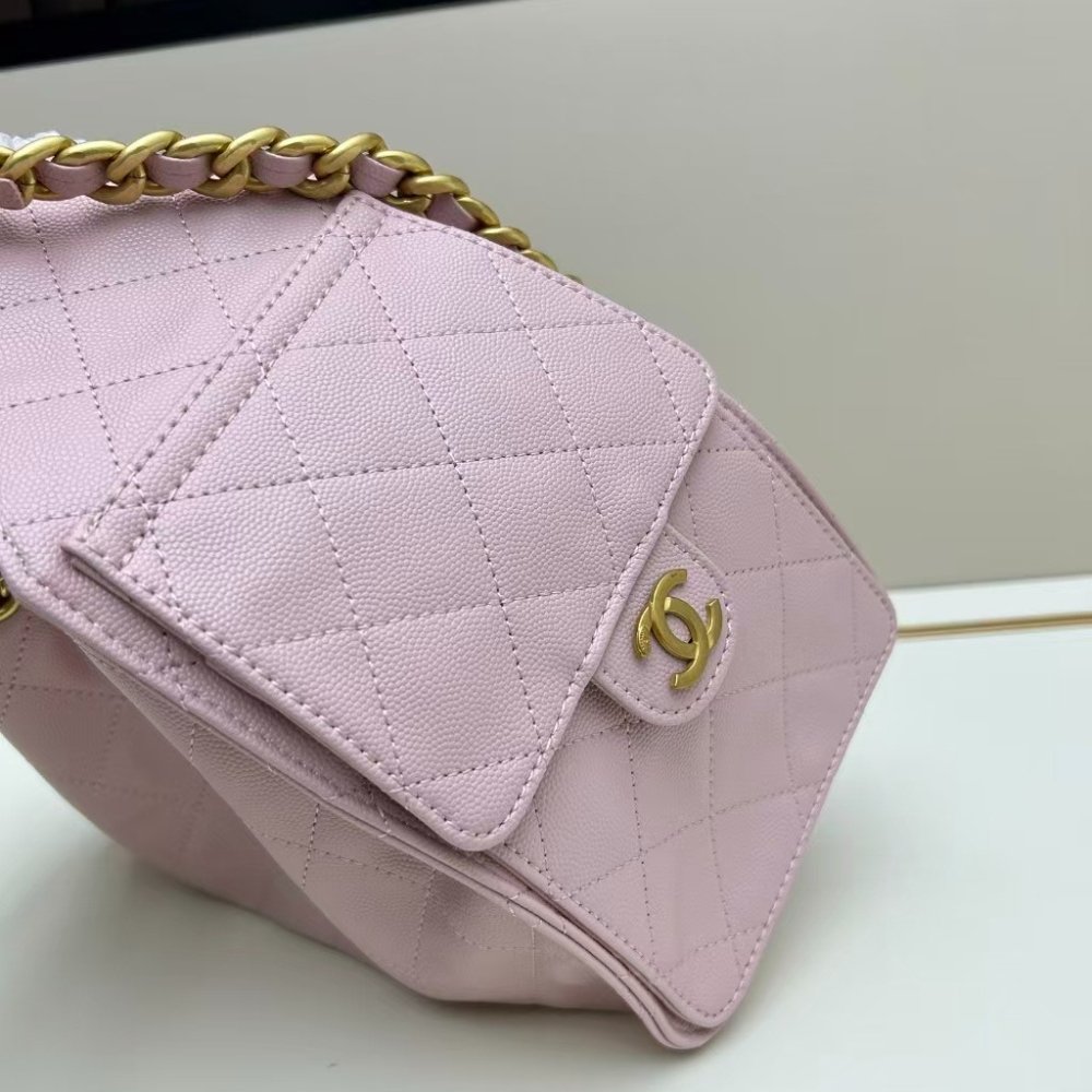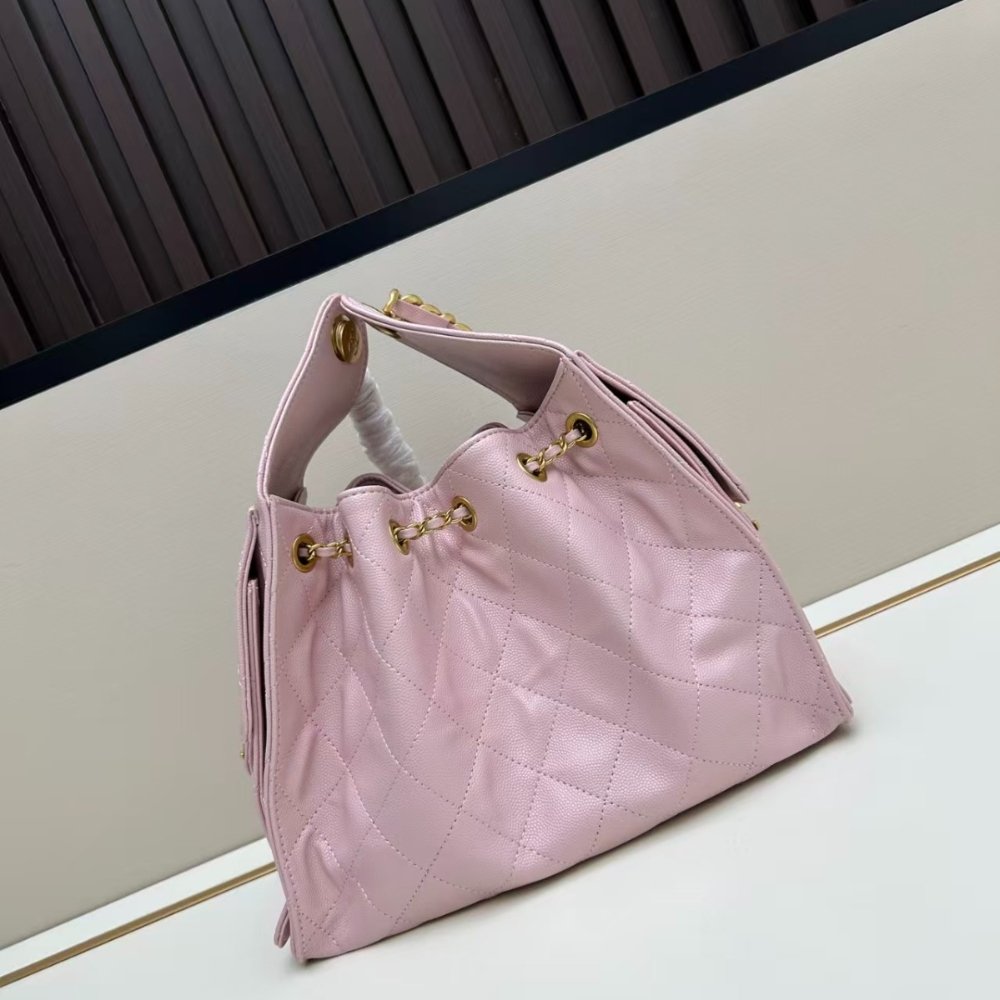 This iconic Chanel bag is a timeless piece of luxury, designed with quilted leather and a signature gold-tone chain strap. Featuring a stylish drawstring closure, it offers a perfect balance of elegance and functionality. Ideal for both day-to-night wear, this bag adds a chic, refined touch to any outfit. Enhance your collection with this classic piece that blends beauty, craftsmanship, and practicality.