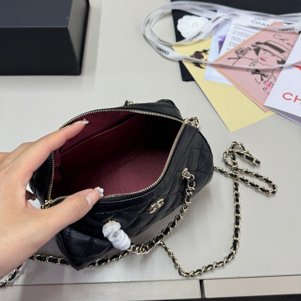 - Gold-tone CC logo at the front for signature branding