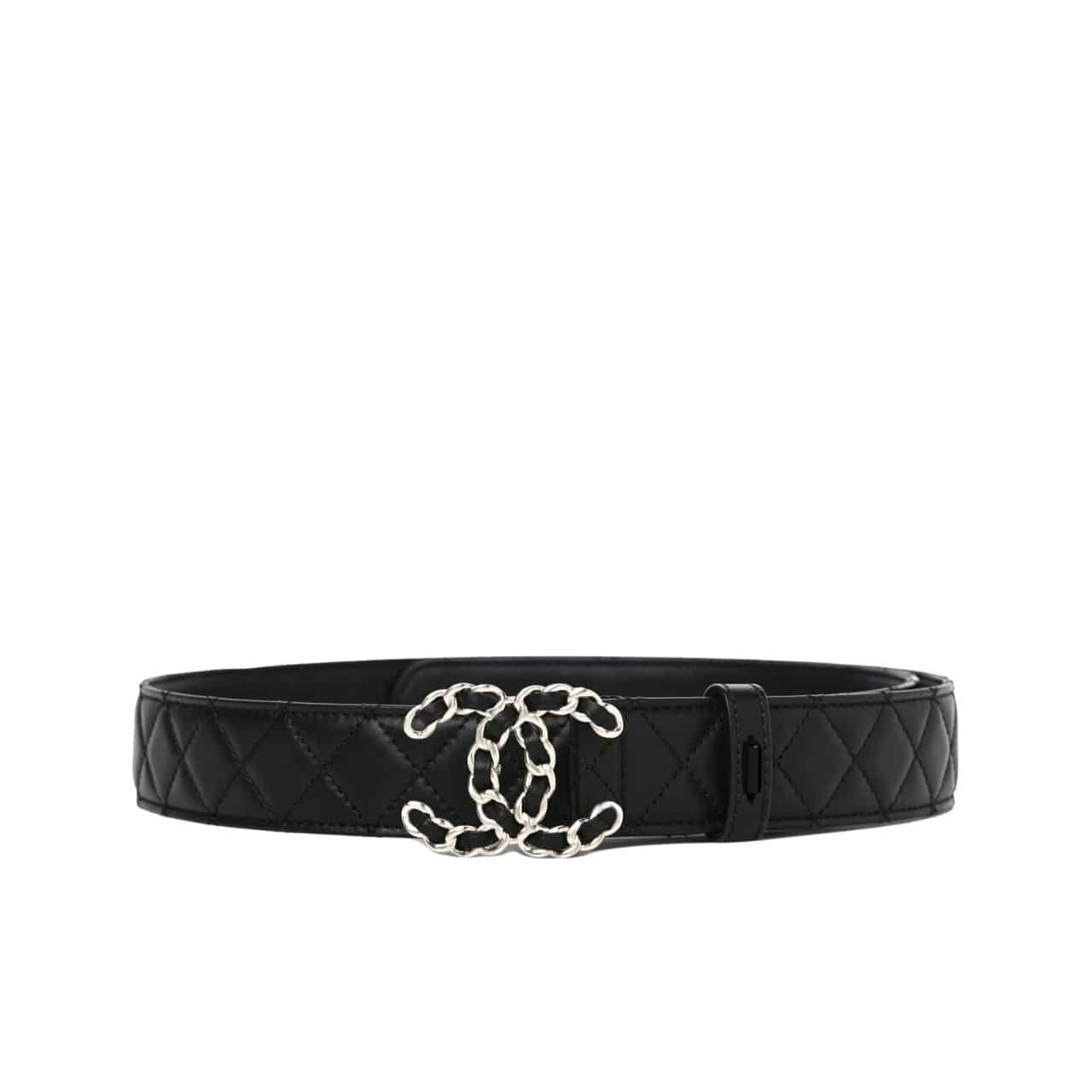 Chanel Cc Belt Silver Chain And Black Leather 28Mm