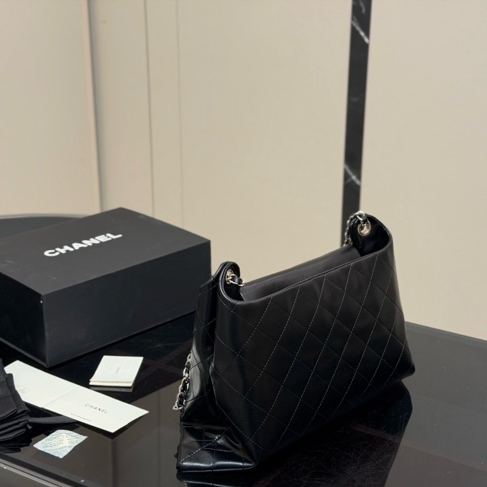 The Chanel Hobo Bag in Black is a sophisticated and spacious accessory that exemplifies the Maison’s dedication to blending effortless daily utility with timeless luxury. This large model is typically crafted from premium quilted leather, featuring the iconic diamond-quilted pattern and a polished gold-tone CC turn-lock closure.