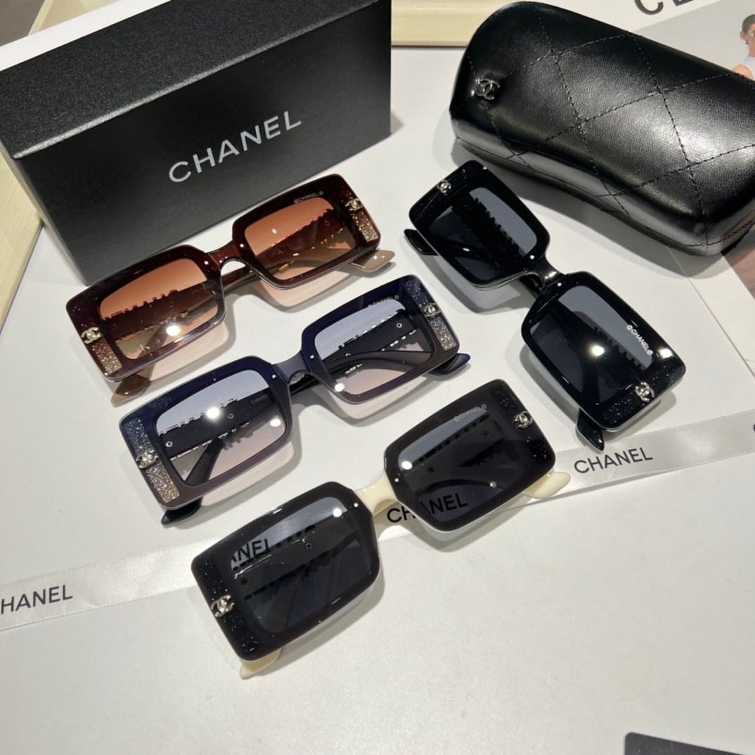 Chanel Rectangle Shiny Design Gradient Sunglasses Deep Blue