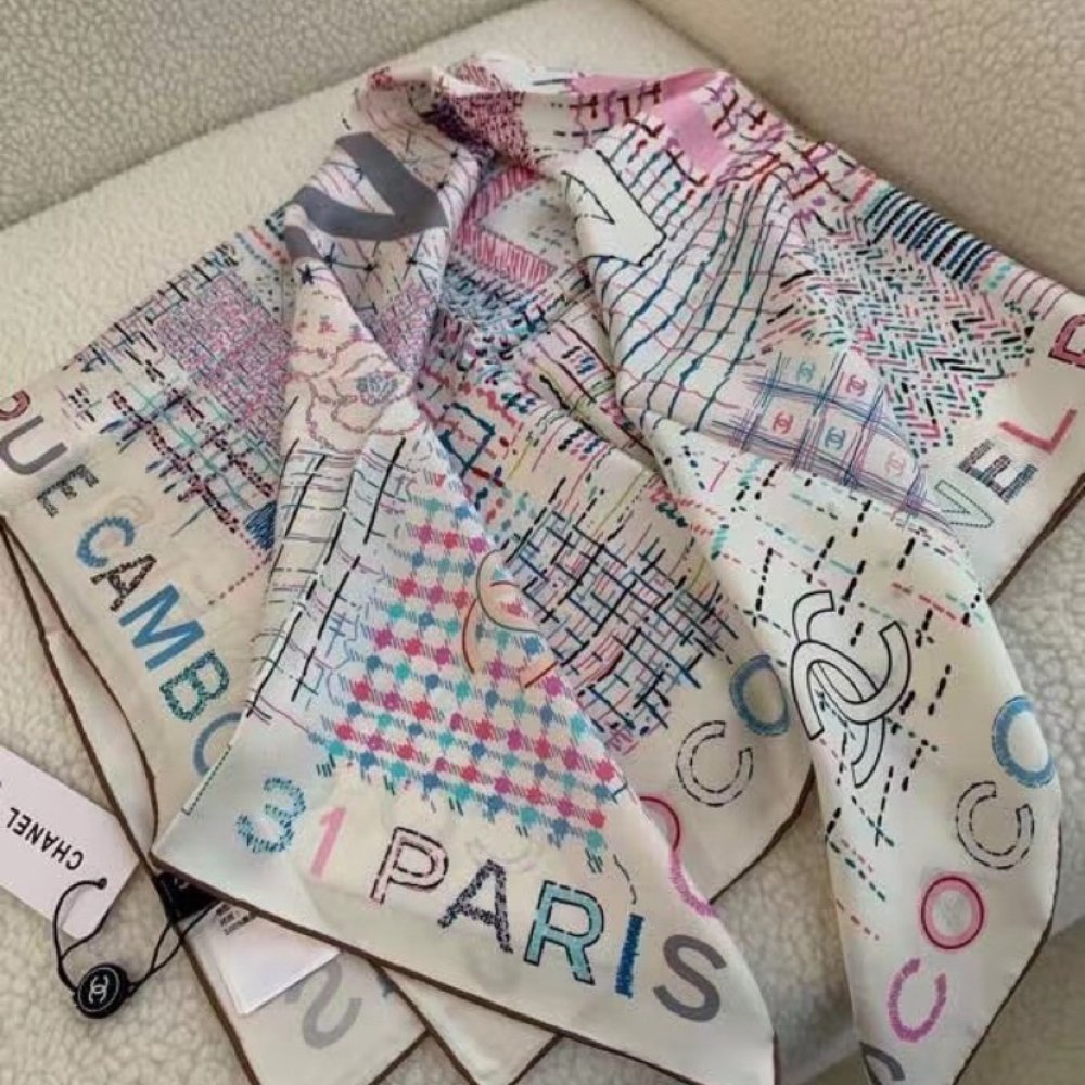Chanel Square Scarf Silk Twill Multicolor In Ecru 90Cm Aa8619 B09320 Nk635