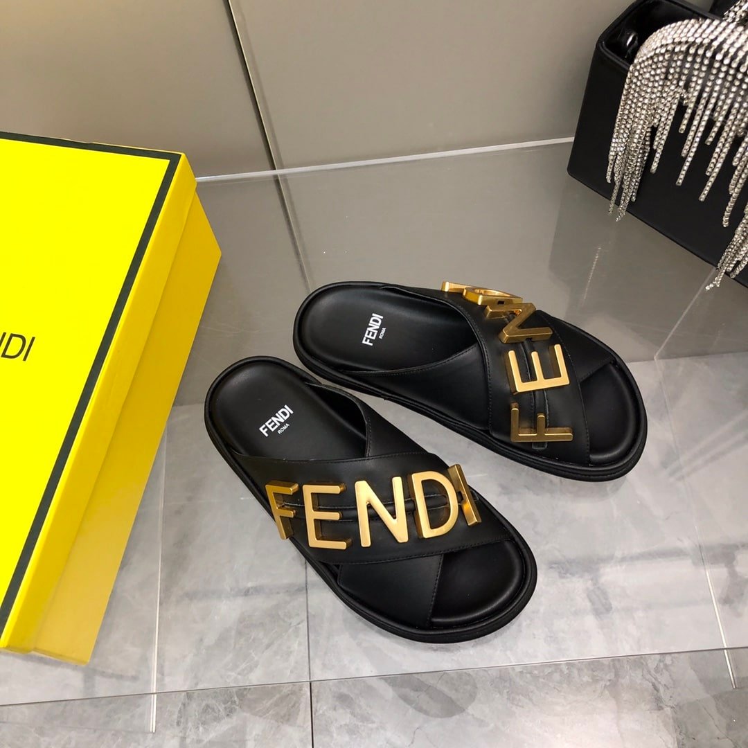 Fendi Fendigraphy Leather Slides Black 8X8289Ai1Rf1H1K