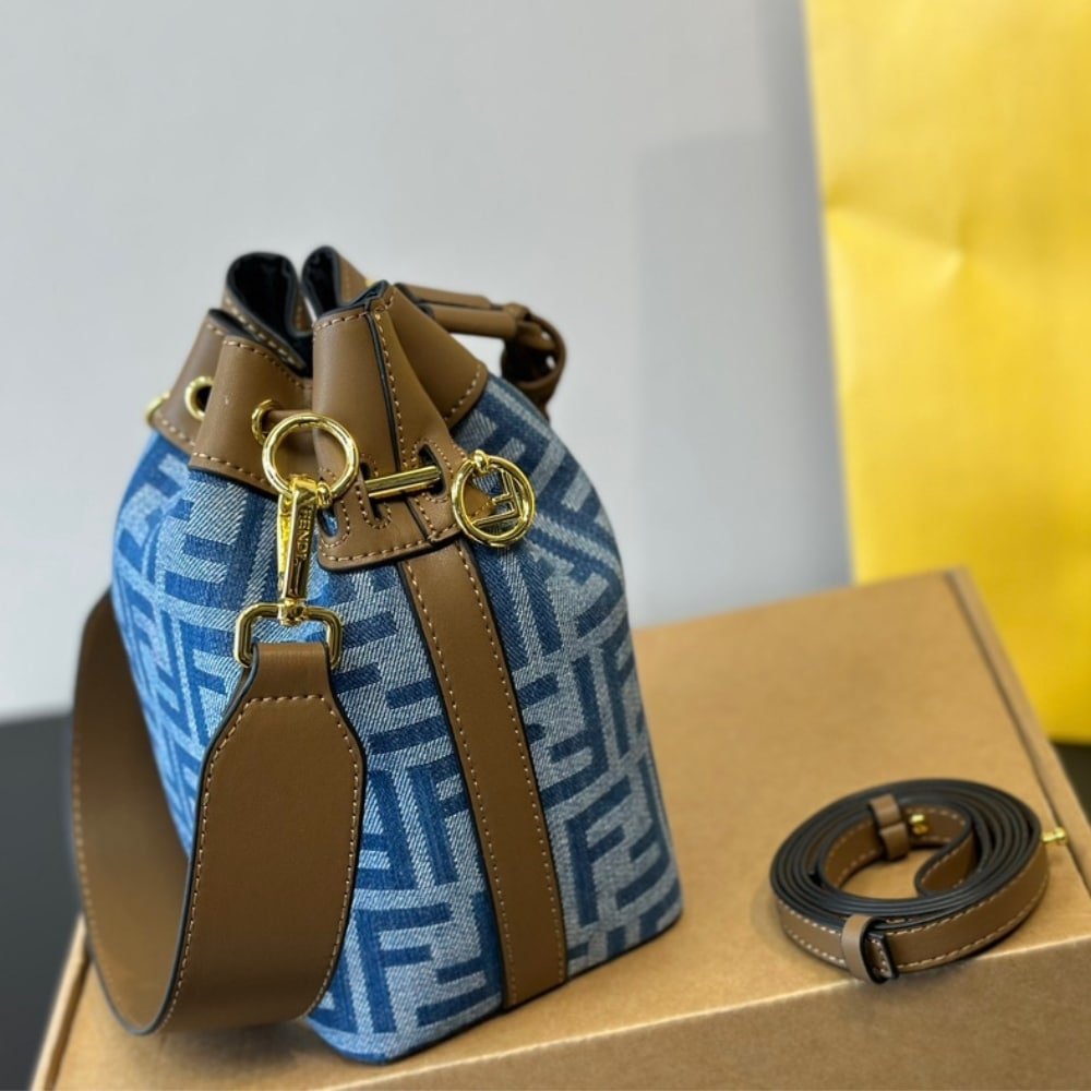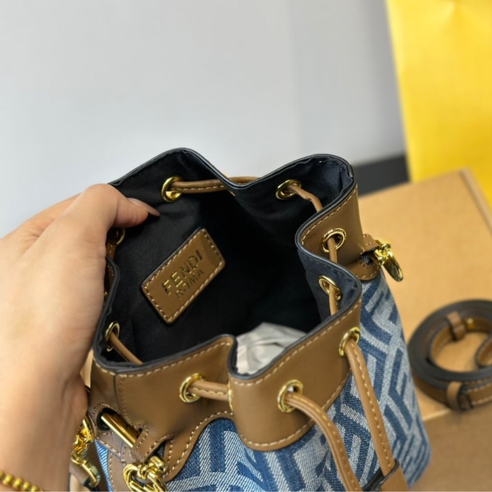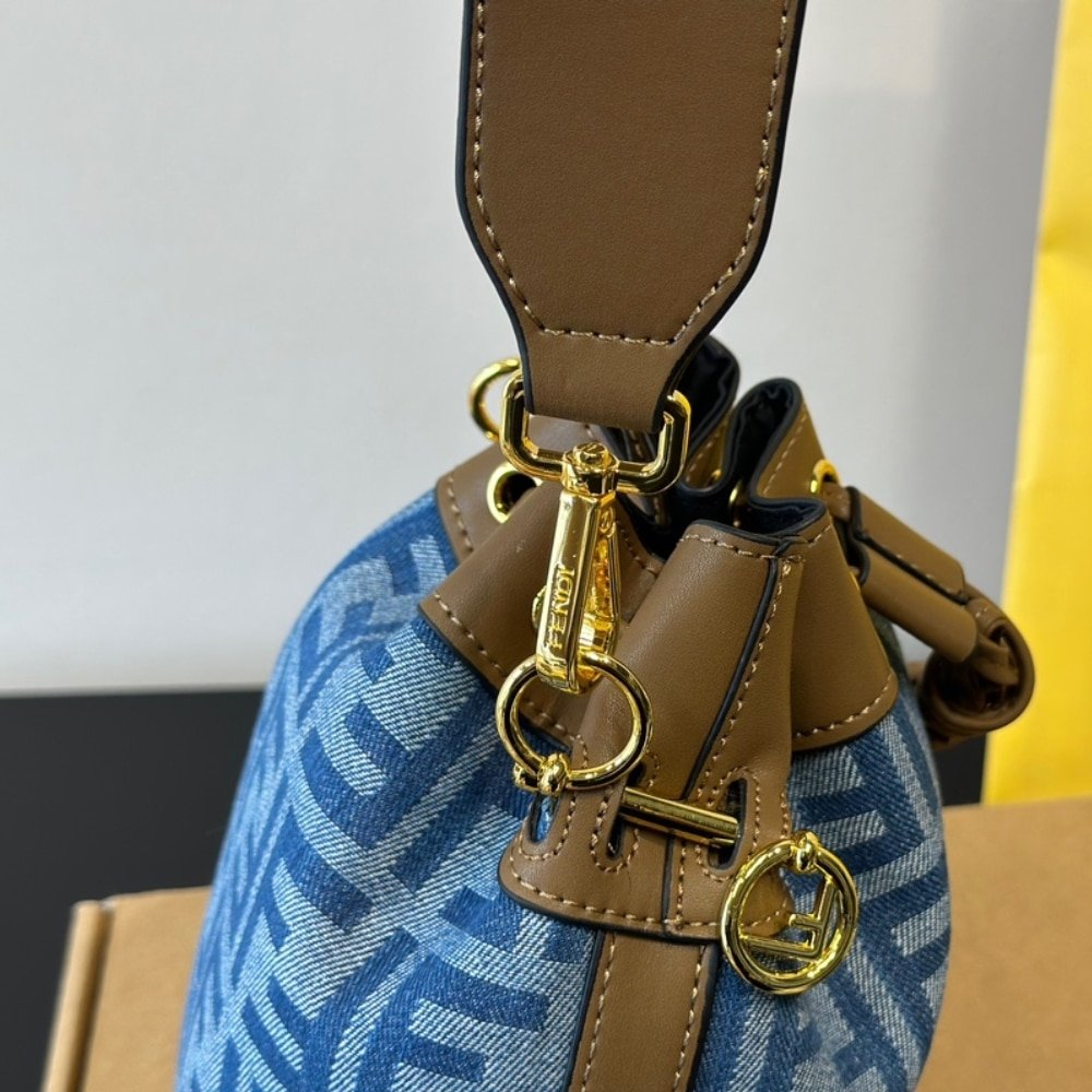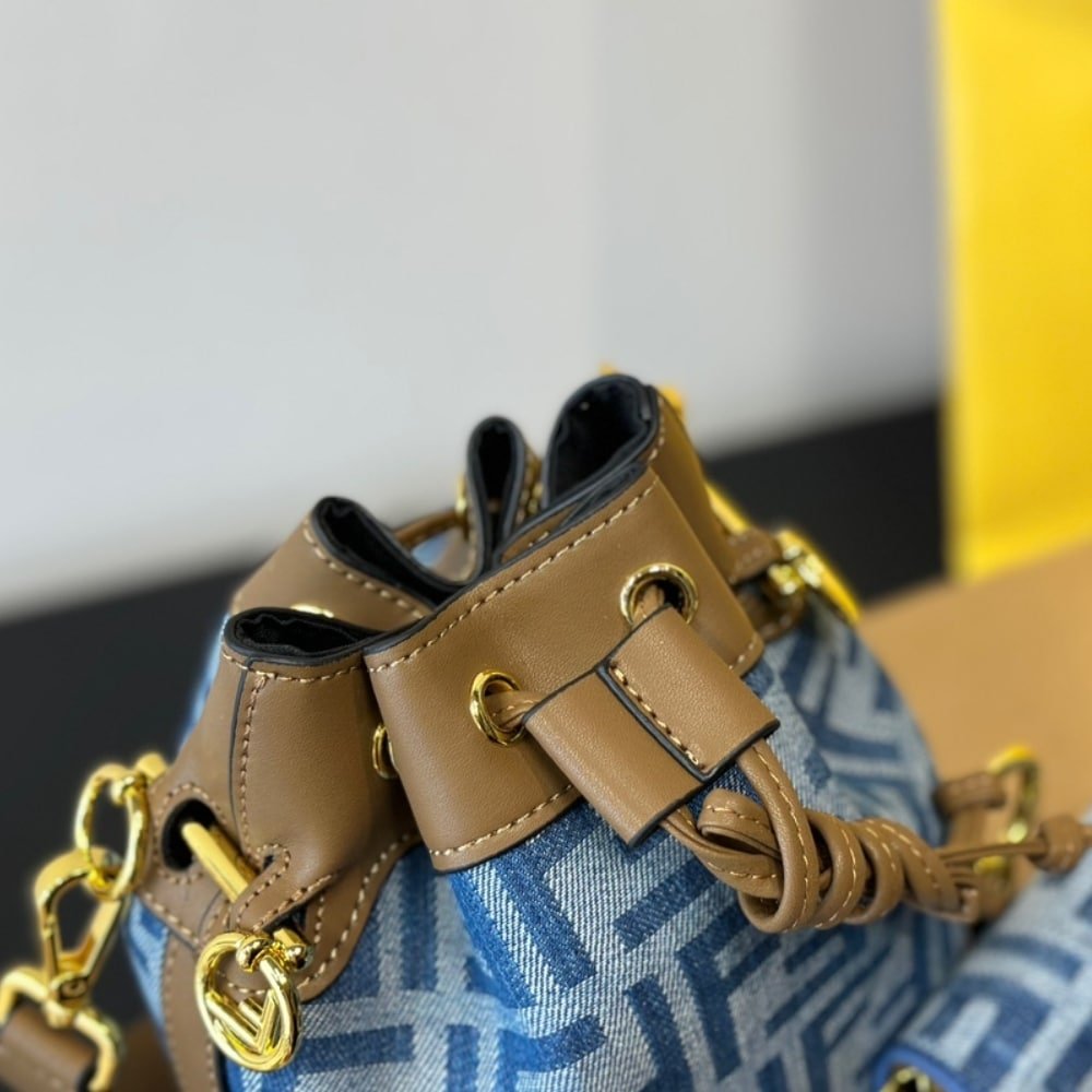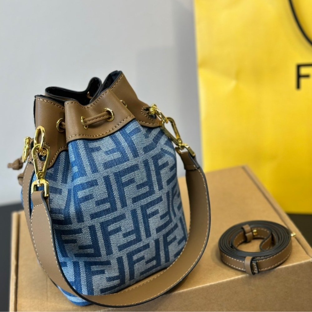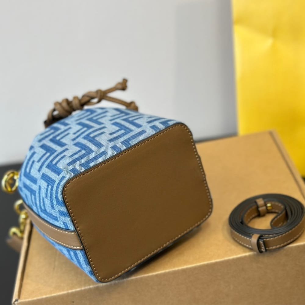- Made of denim-effect, light blue fabric, with an FF motif.