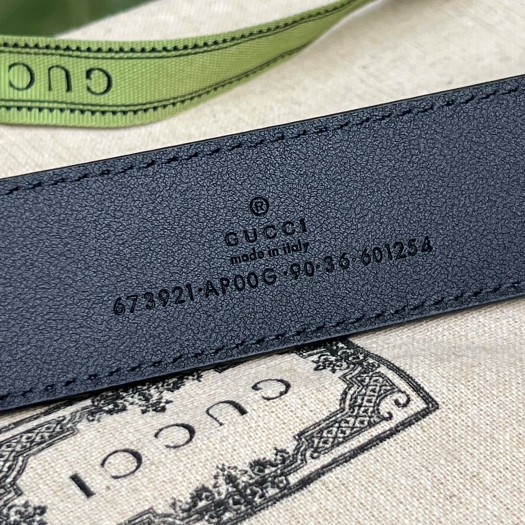 Gucci Belt With Interlocking G Detail Black Leather 35Mm ‎673921 Ap00G 1000