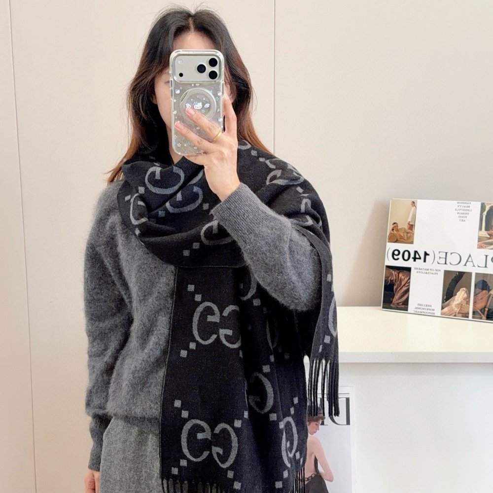 Be the first to review “Gucci Gg Cashmere Lamé Jacquard Scarf Dark Gray And Black 180Cm 674275 4Gabx 1360” Cancel reply