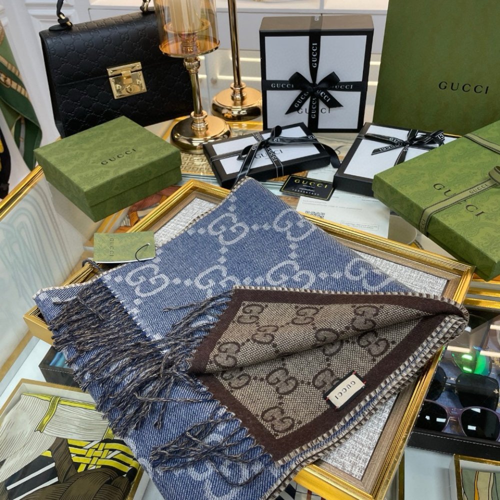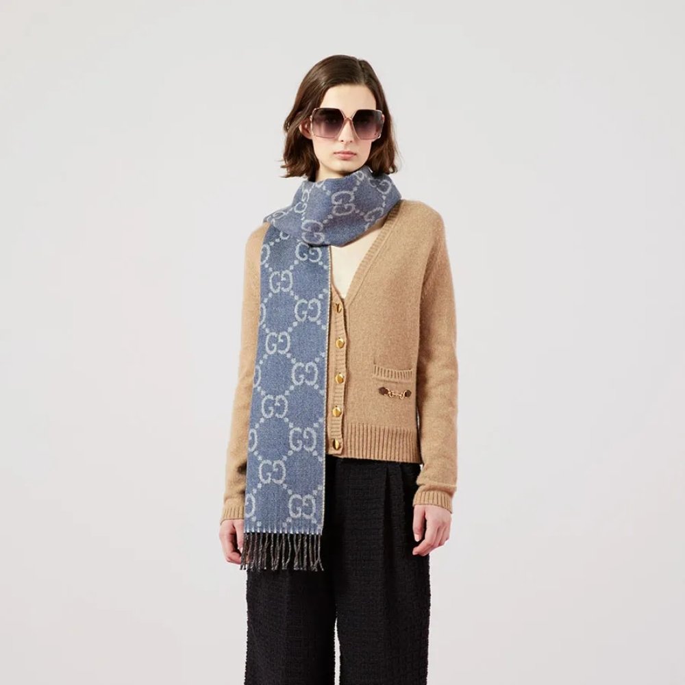Be the first to review “Gucci Gg Jacquard Knit Scarf Tassels Navy And Brown 180Cm 6766103G2004165” Cancel reply