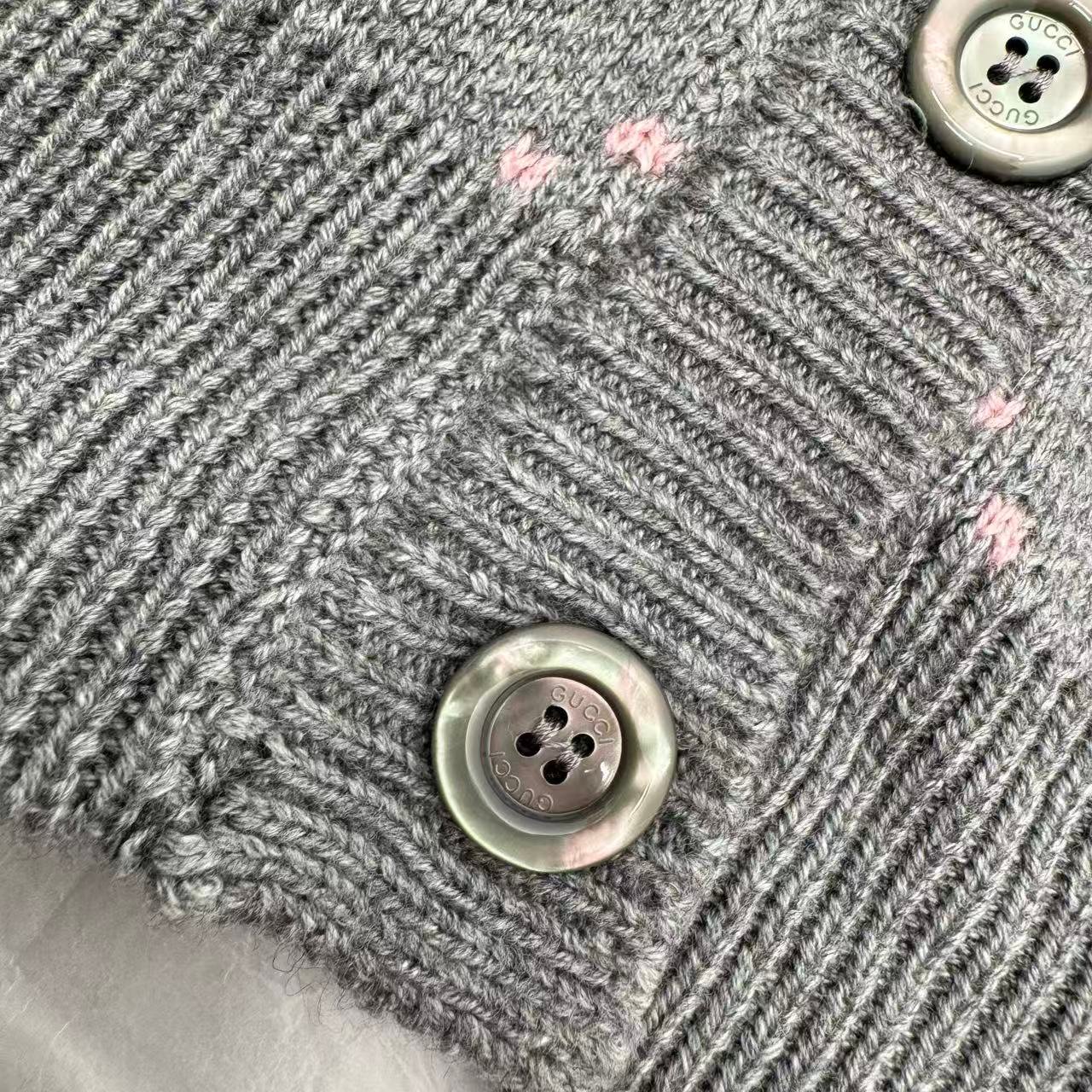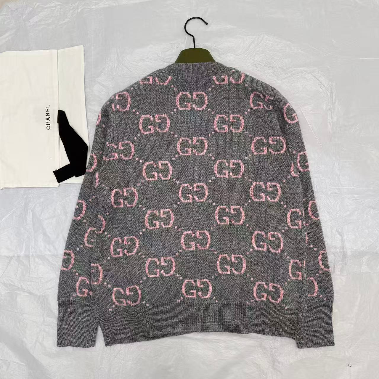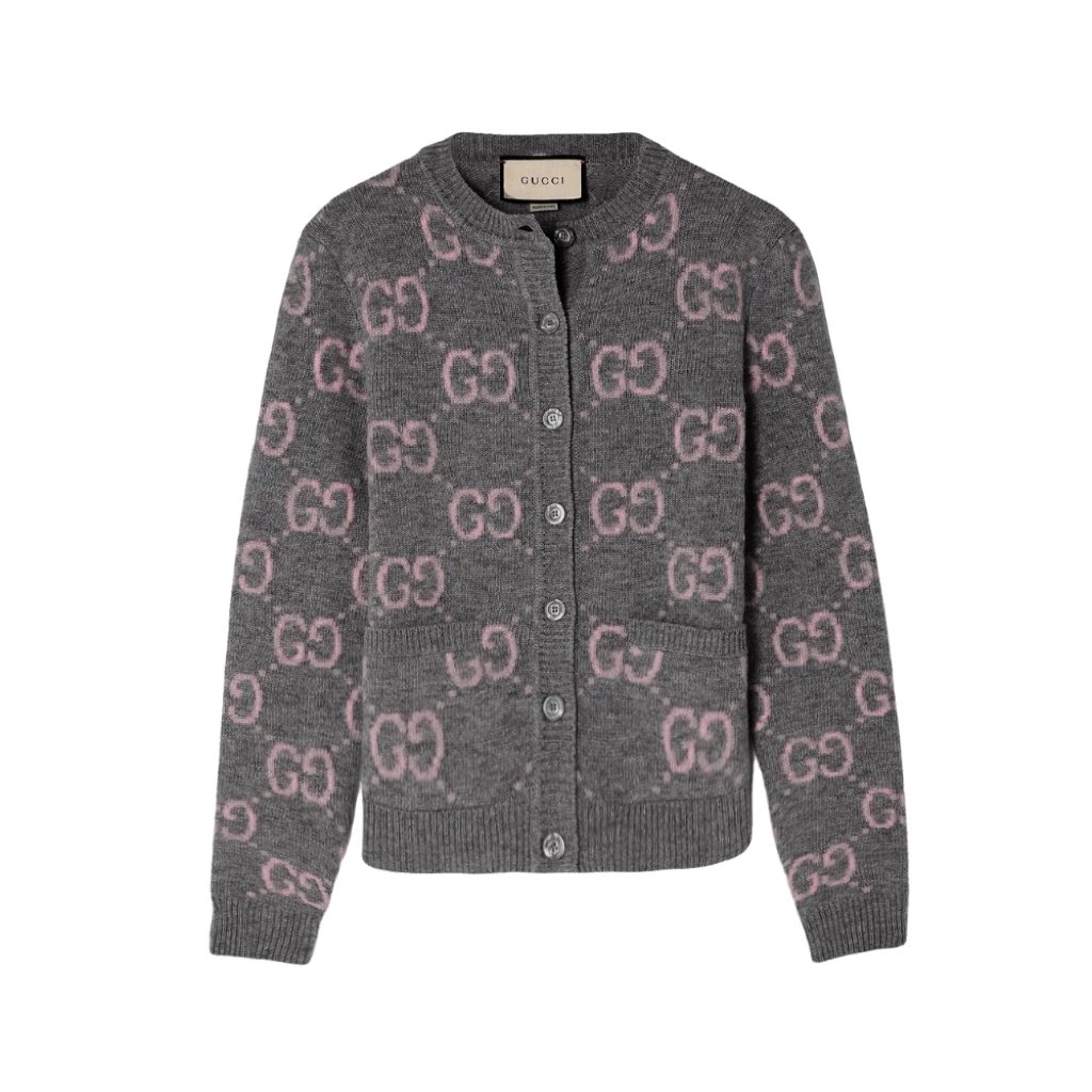 Gucci Gg Monogram Knit Cardigan In Grey With Pink 772886 Xkb3V 1124