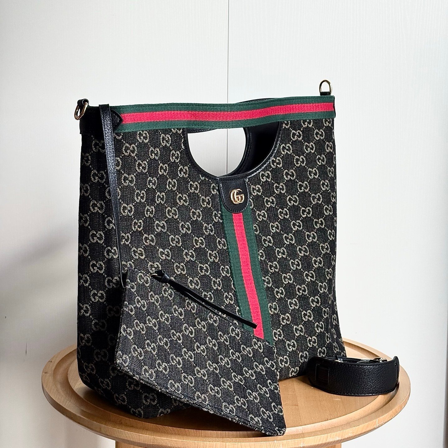 Gucci Giglio Large Tote Bag Black And White GG Denim 39Cm 865452 UN3AG 1099