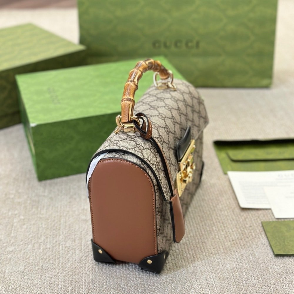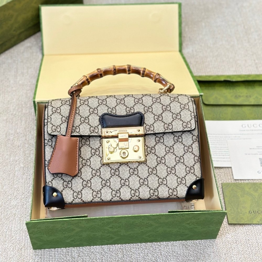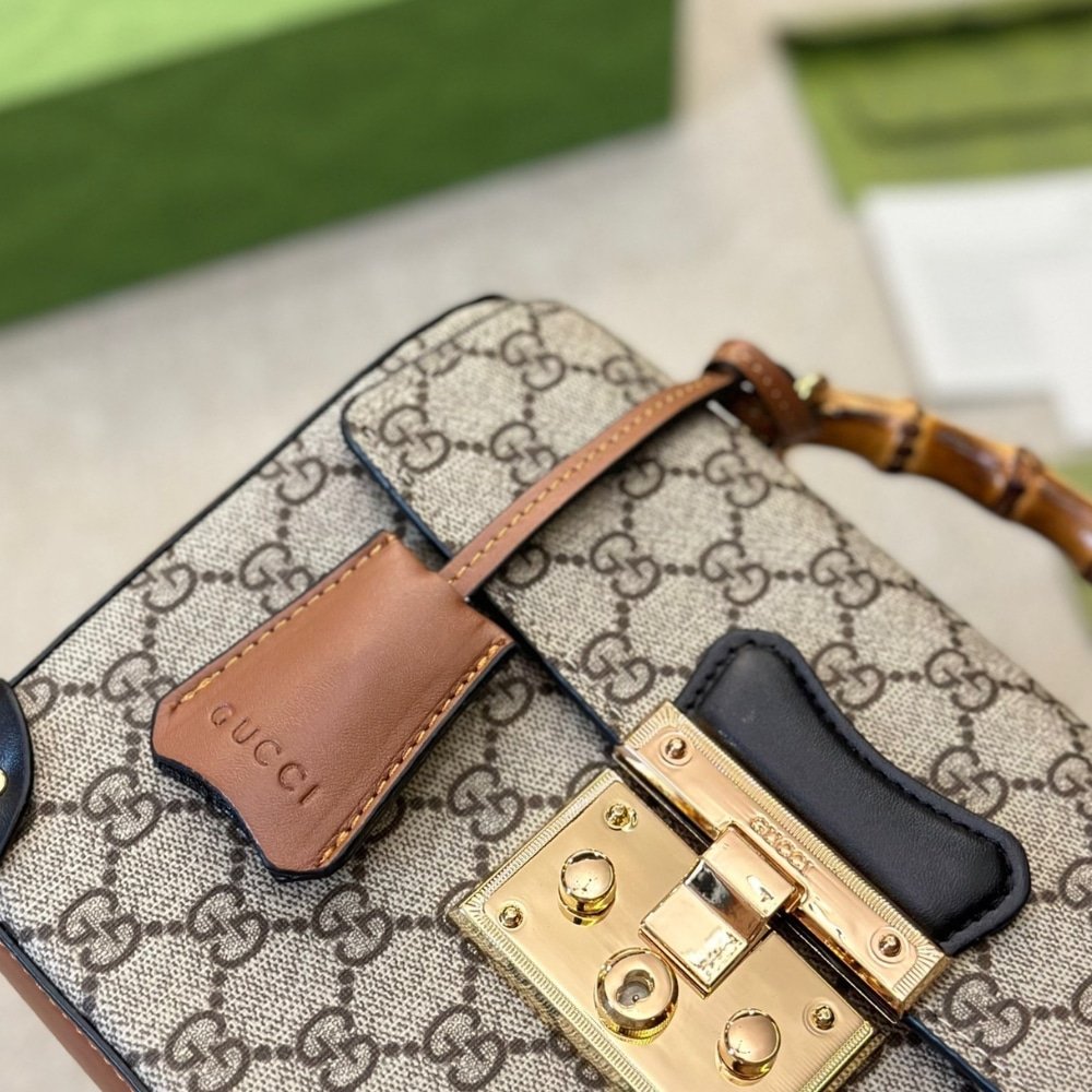 Gucci Padlock Bamboo Handle Gg Supreme Handbag 25Cm