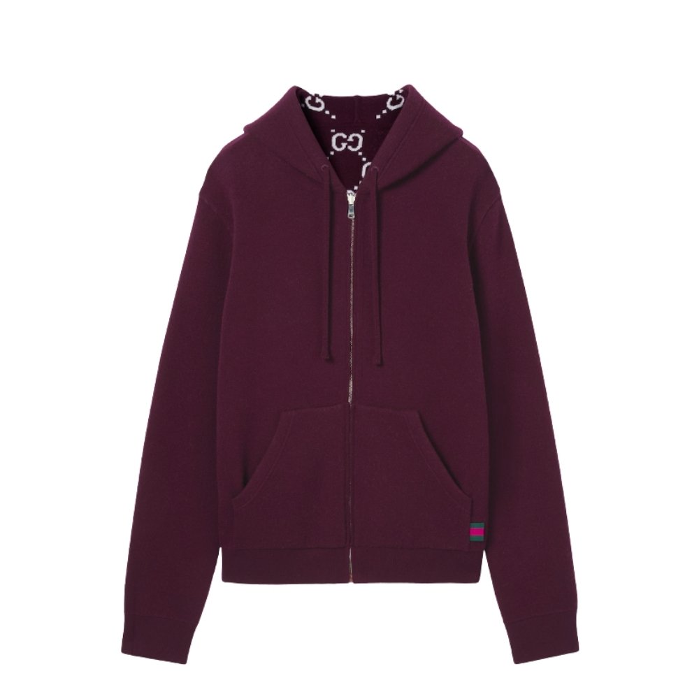 - Burgundy wool knit on one side and GG wool jacquard on the other