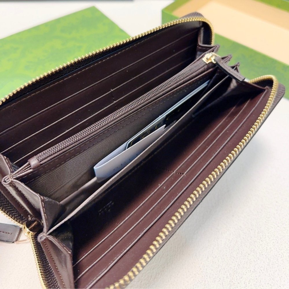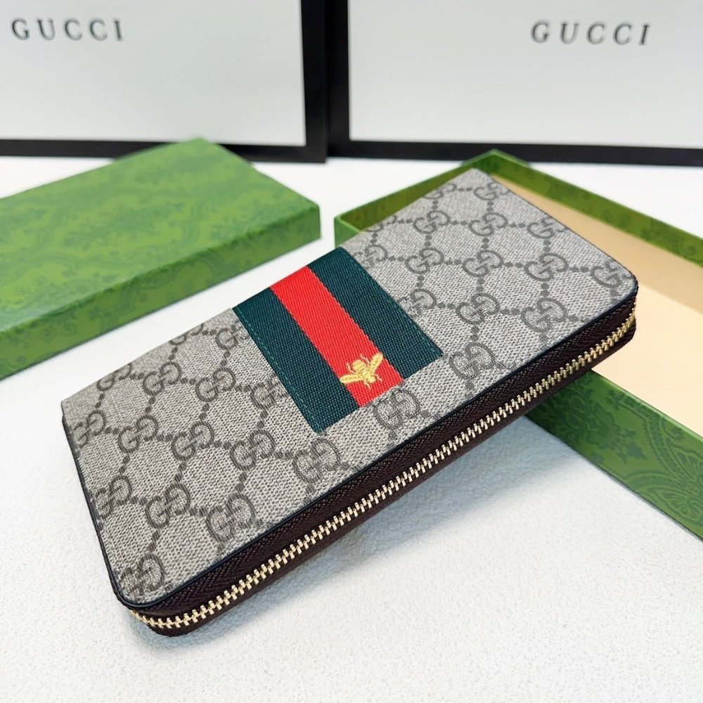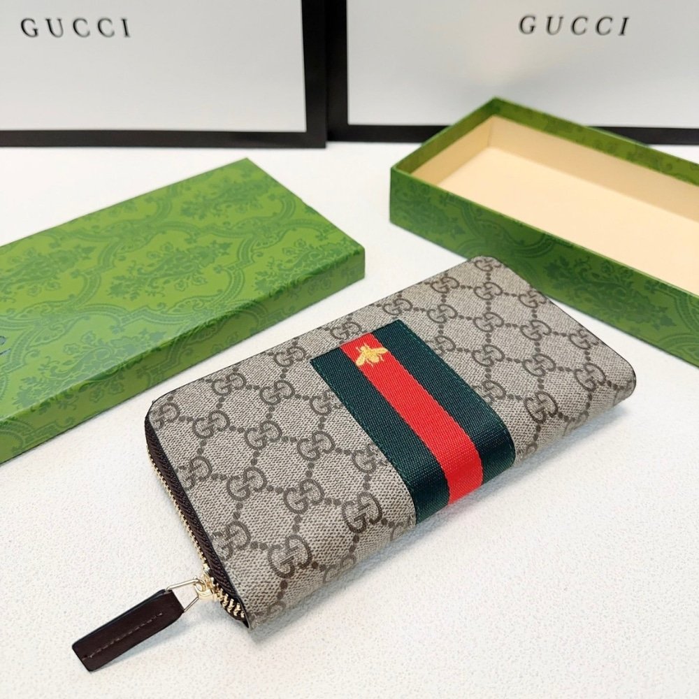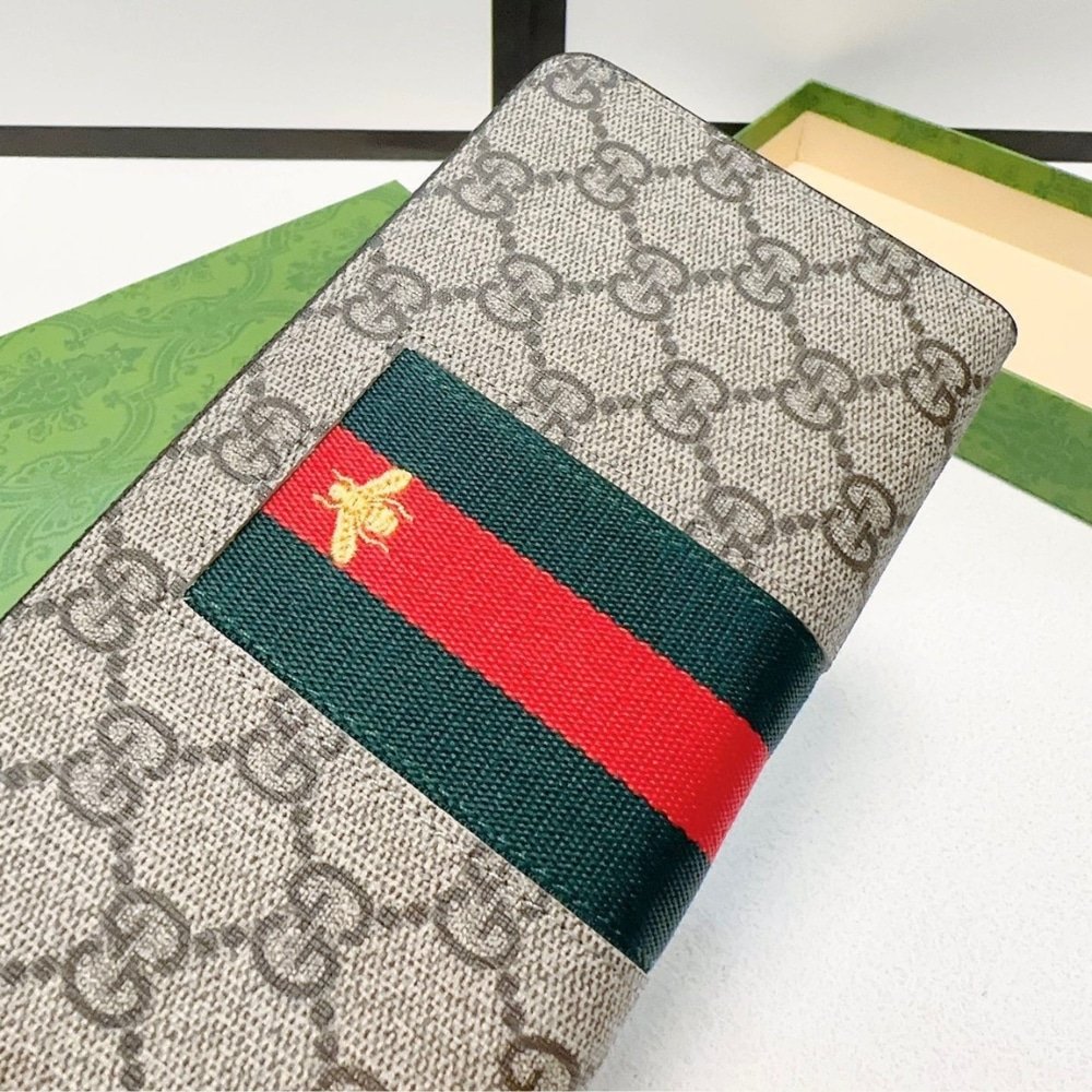Gucci Supreme Canvas Bee Leather Wallet Long Round Zipper Web Beige Ebony 21Cm