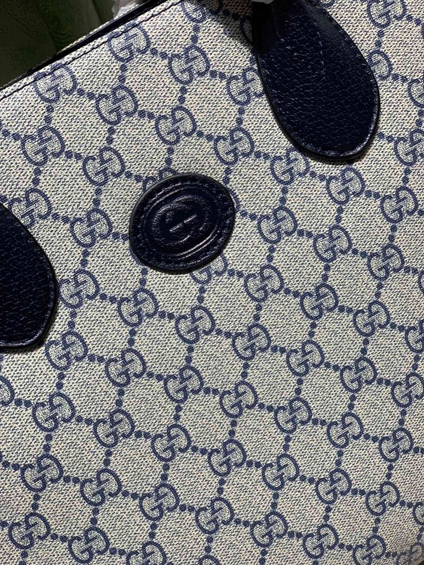 Gucci Tote Bag With Interlocking G Beige And Blue 31Cm 659983 K9Gsn 4075