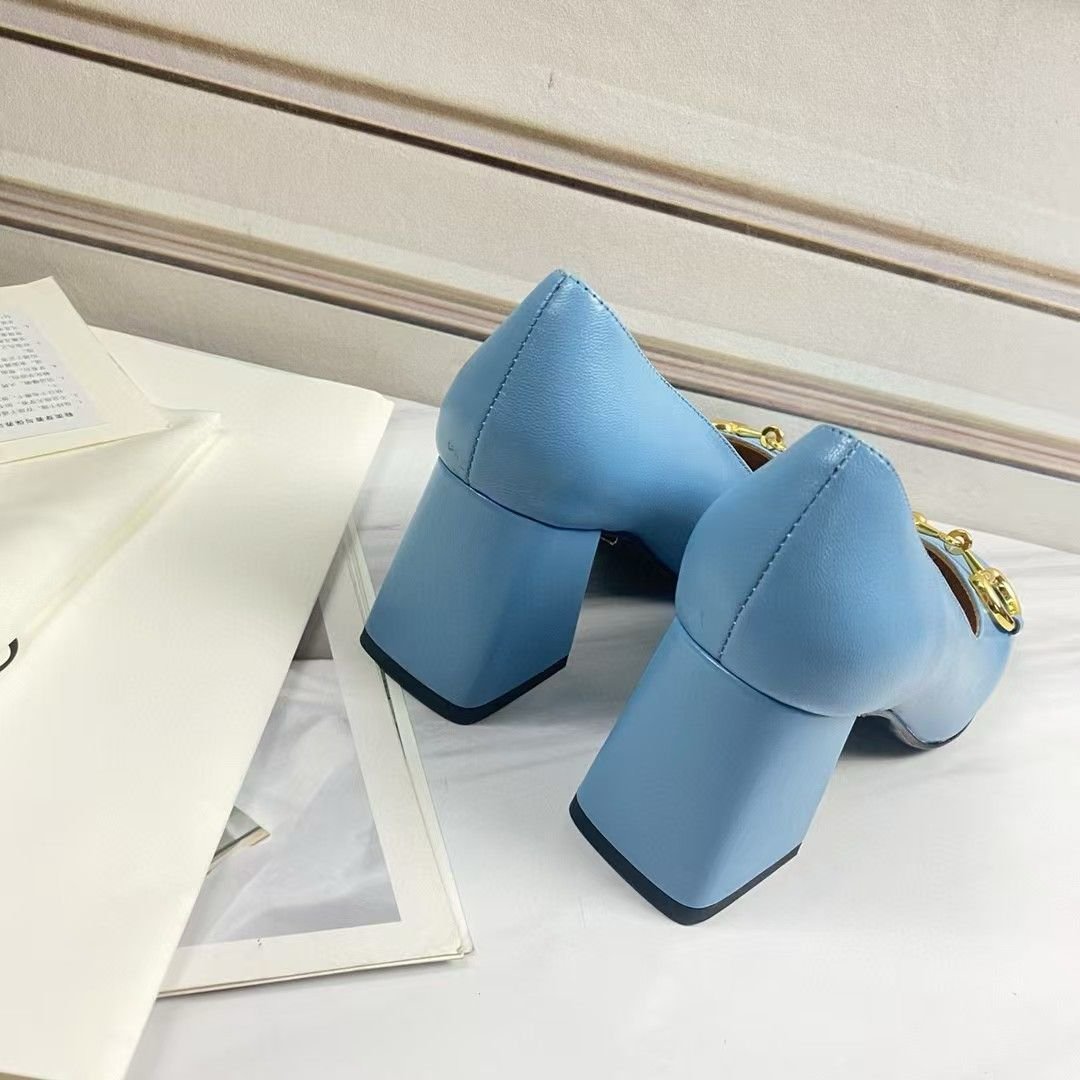 Gucci Women’S Mid Heel Pump With Horsebit Blue