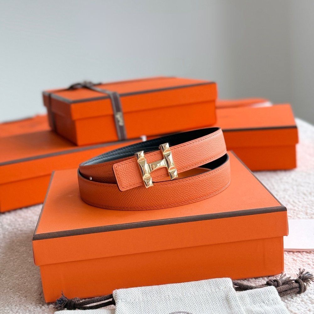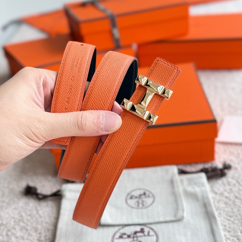 Hermes H Infini Belt Buckle And Reversible Leather Strap 24Mm Gold Orange H011744Ud26