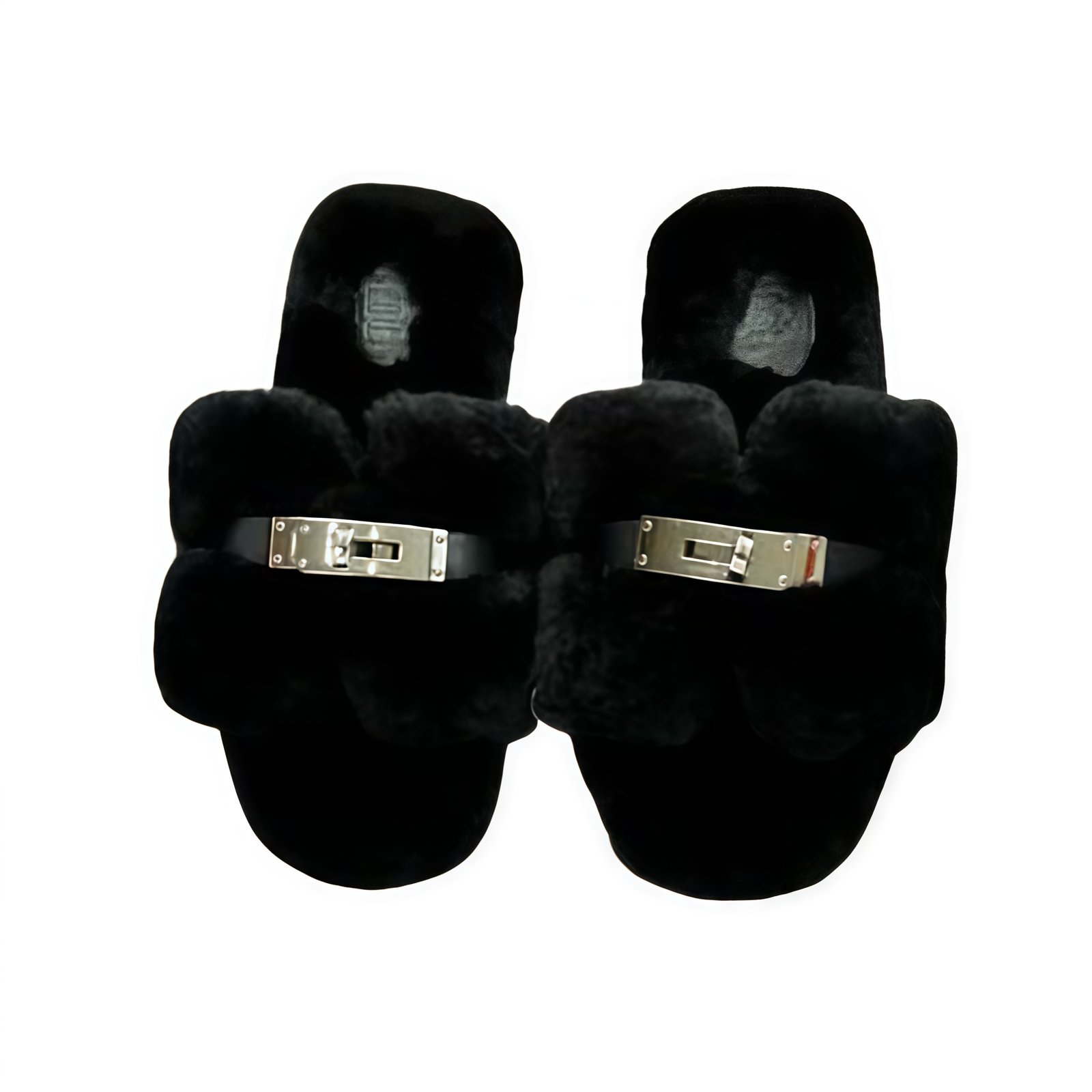 Be the first to review “Hermes Shearling Fur Oran Silver Buckle Sandal Black” Cancel reply