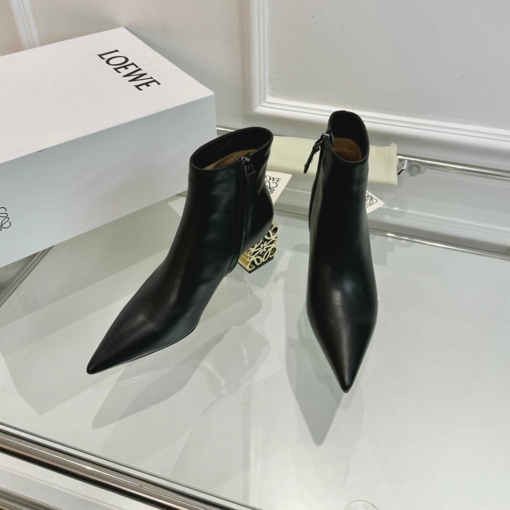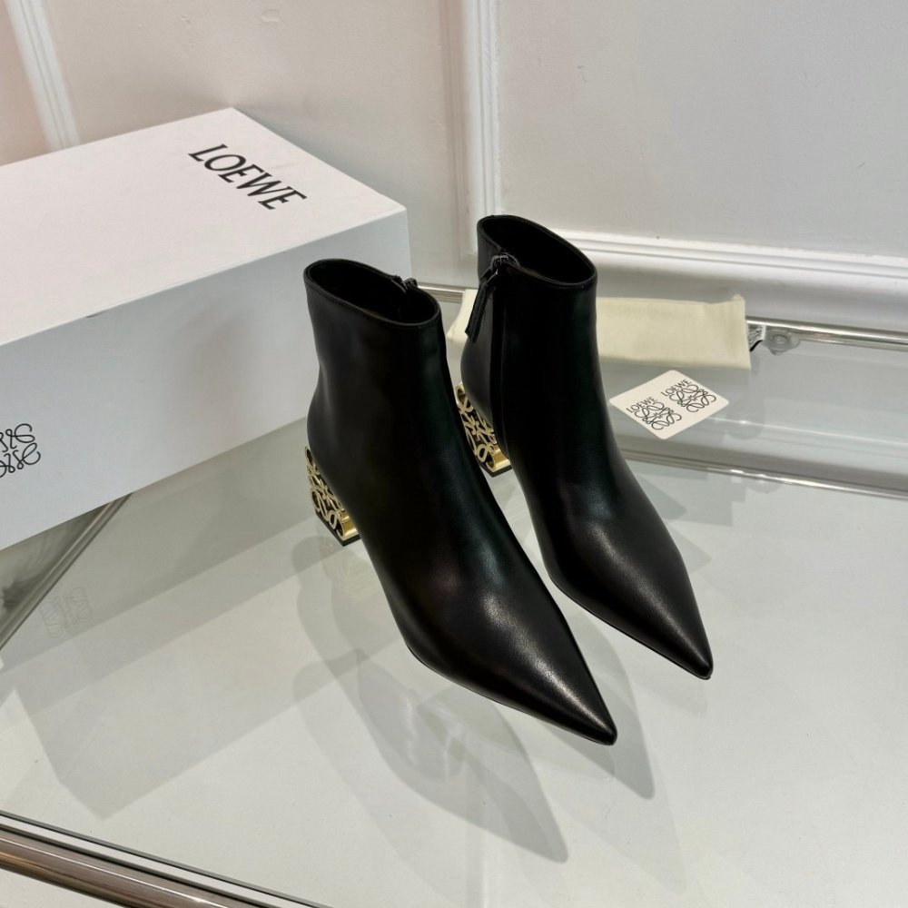 Loewe Anagram Leather Ankle Boots Black