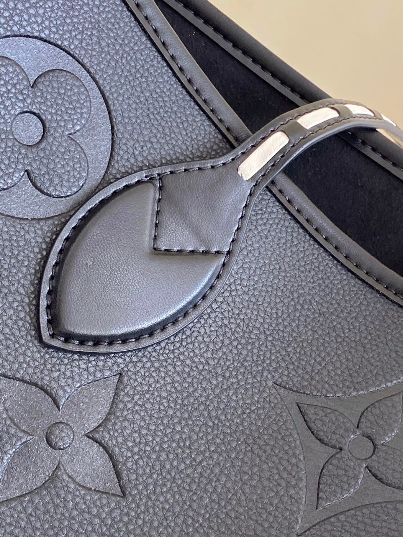 - Embossed supple grained leather