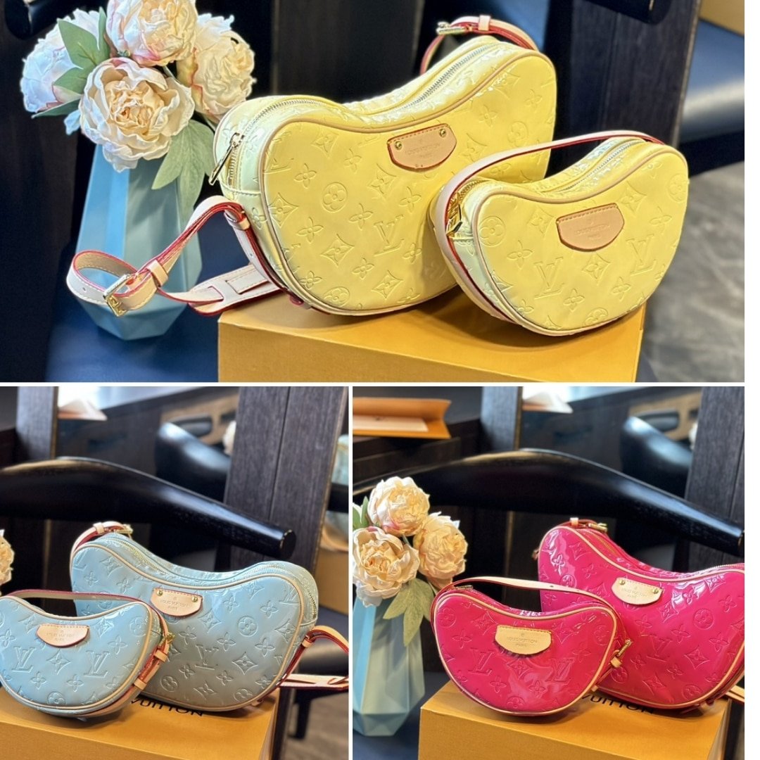 Louis Vuitton Croissant PM Bag Monogram Vernis Leather Sky Blue 25Cm M24021