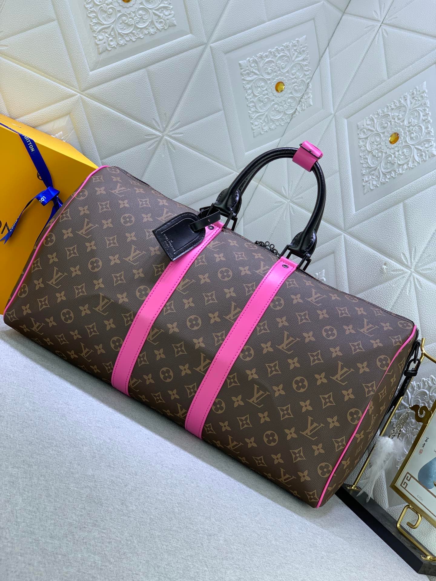 Louis Vuitton Keepall Bandoulière 50 Brown And Pink Macassar Canvas
