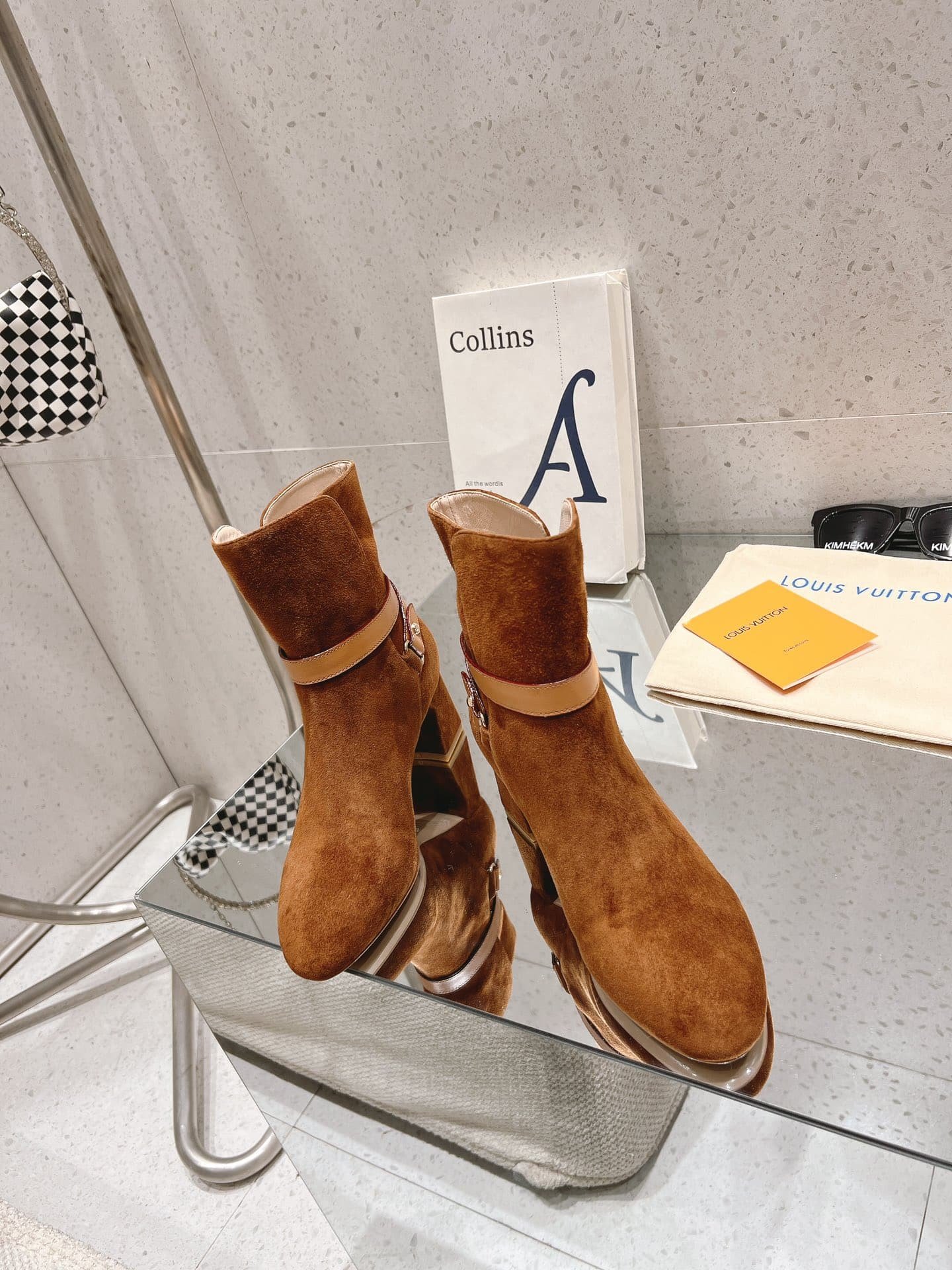 Louis Vuitton Parisienne Ankle Boot Suede Leather Brown