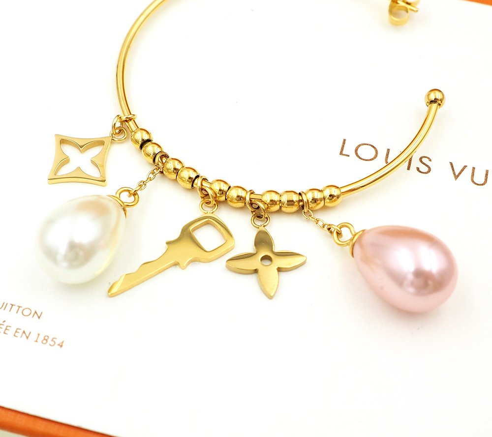 Louis Vuitton Pearl Gold Charm Hoop Earrings