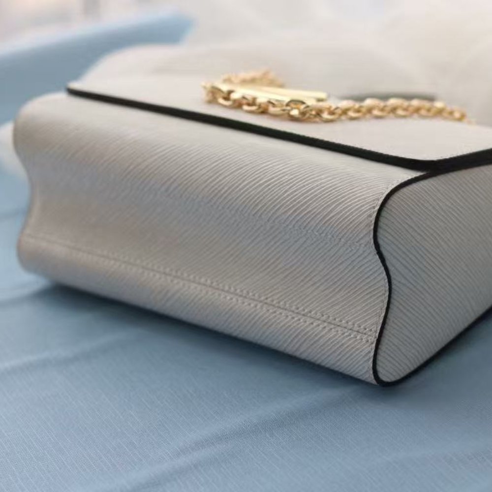 Crafted from the House’s emblematic Epi leather, the Twist MM chain bag features the now-iconic LV Twist lock, a sculptural signature in silvery polished metal. Unexpectedly roomy thanks to the cleverly designed “wave” base, this beautifully made bag is a fashionable day-to-evening companion. The sliding chain strap can be doubled for shoulder carry or lengthened for cross-body wear. A New Classic of the House, the Twist bag was introduced at the 2015 Cruise show.
