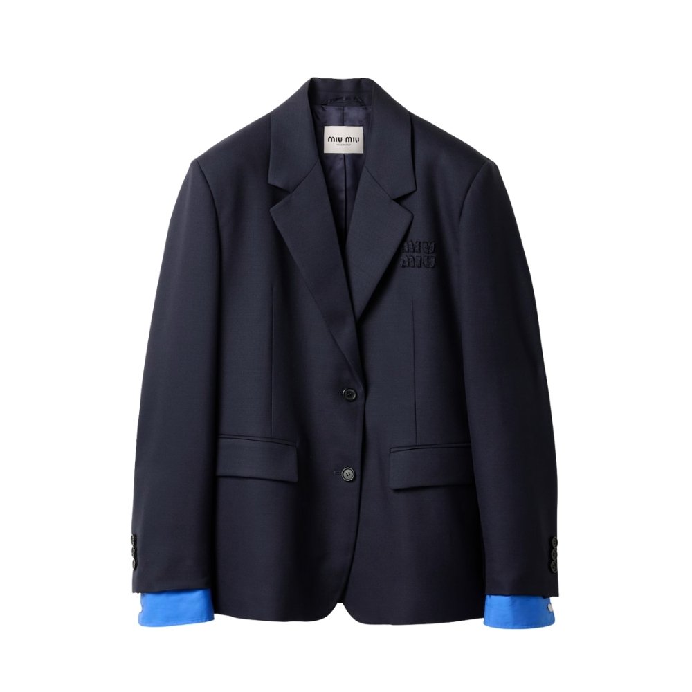 Miu Miu Single Breasted Gabardine Jacket Navy Mh1974 16E8 F0124 S Ooo
