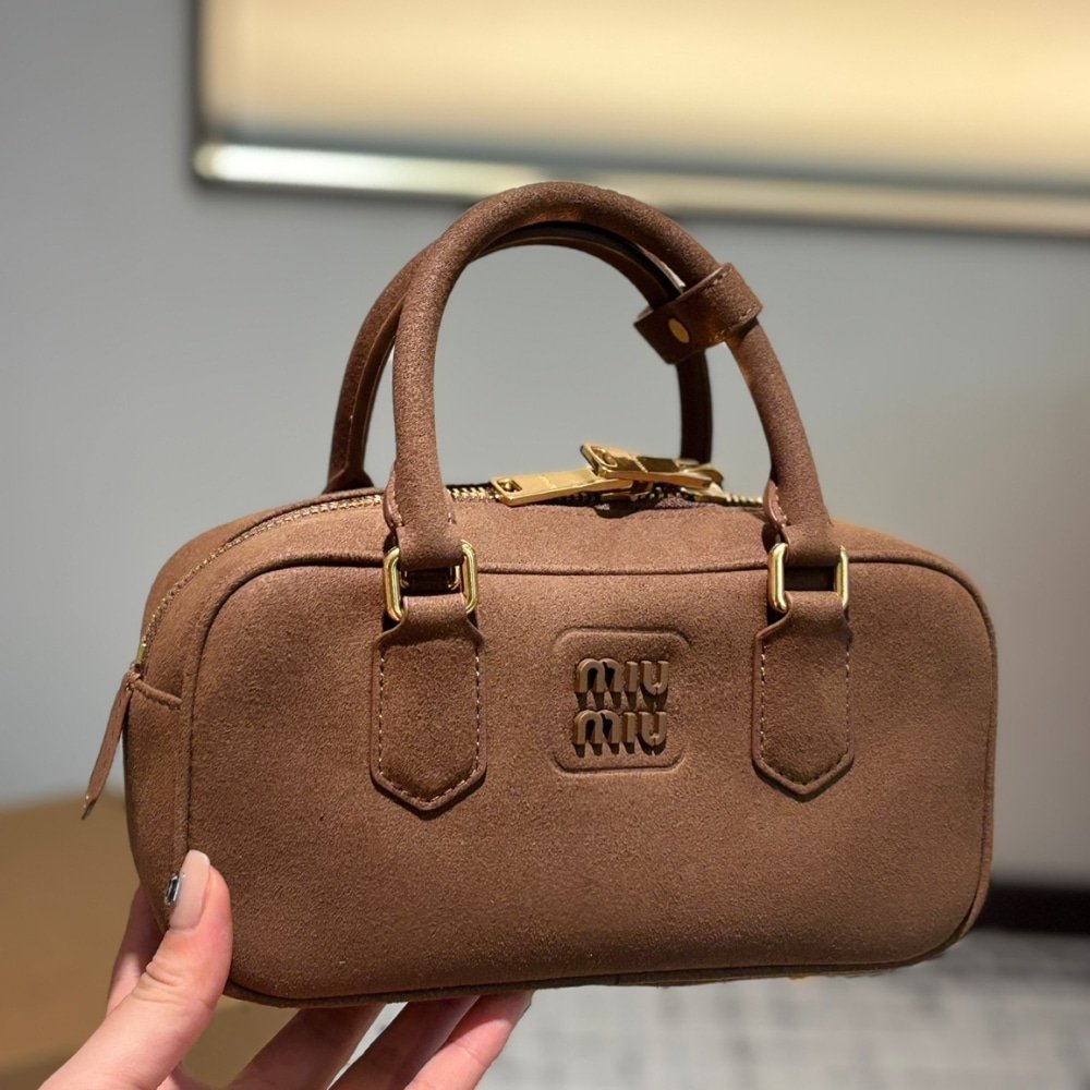 Miumiu Arcadie Padded Suede Top Handle Bag Cocoa Brown 23Cm 5Bb142 2Cs4 F0324 V Oon