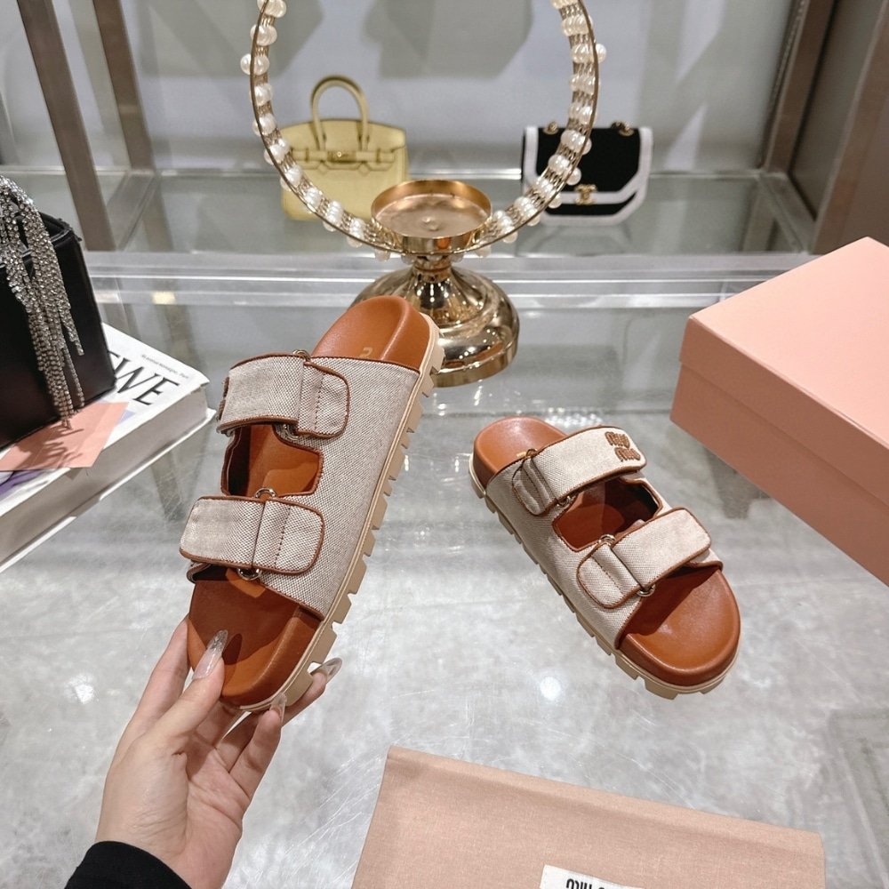 Miumiu Canvas Slides Beige And Brandy 5Xx658 Q1D F062F F 010