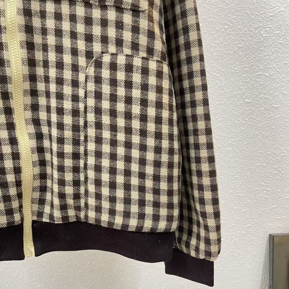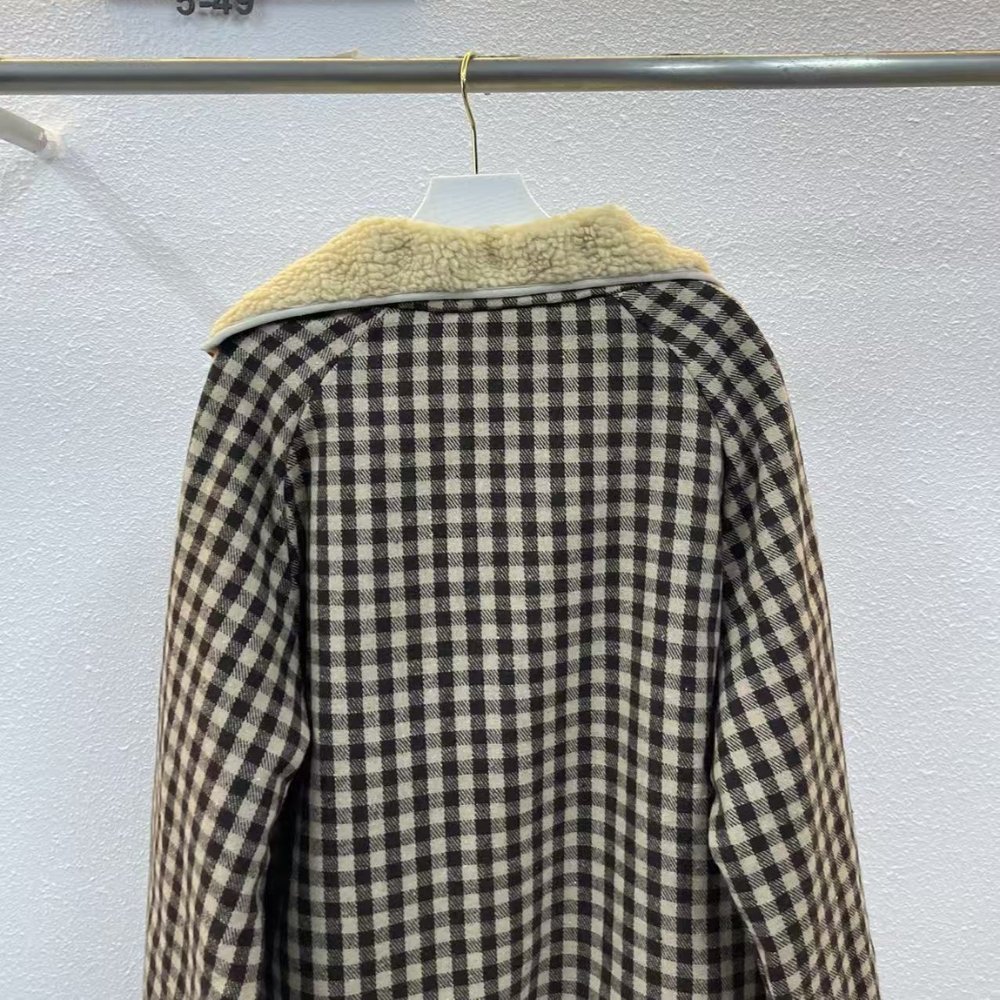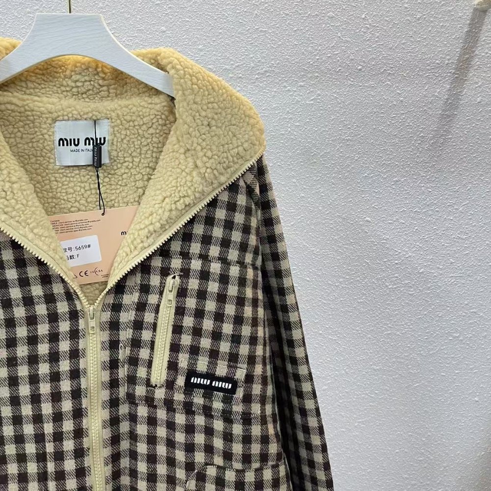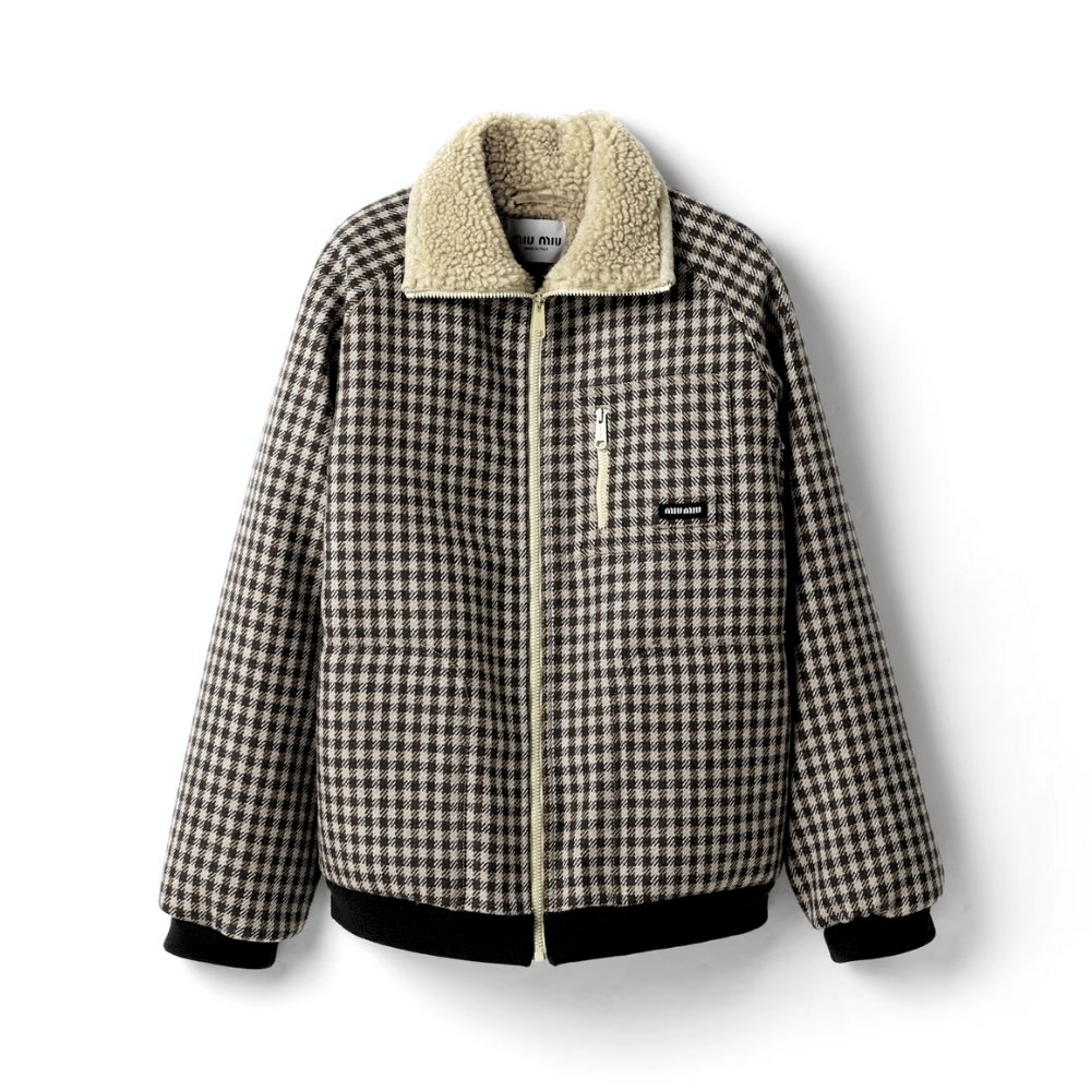 Miumiu Fleece Lined Checked Blouson Jacket Dark Brown Ml1358 18Aa F049P S Ooo