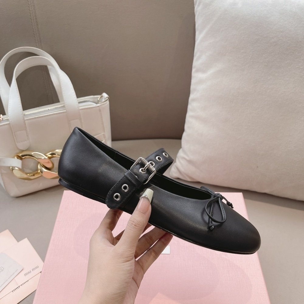 Miumiu Leather Ballerinas In Black 5F210E 070 F0002 F 005