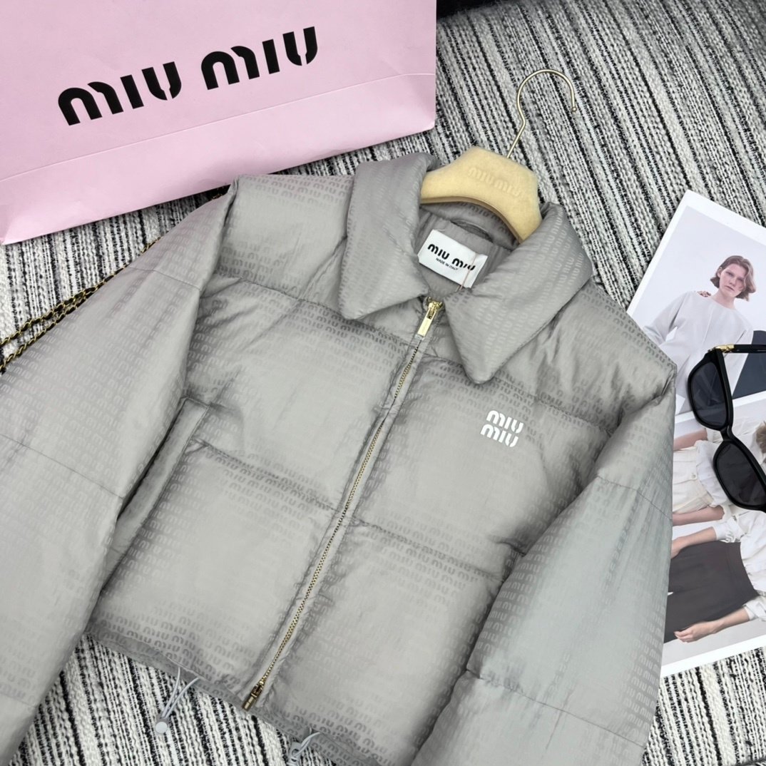Miumiu Logo Jacquard Puffer Jacket Gray Ml1083 Ooo F0024