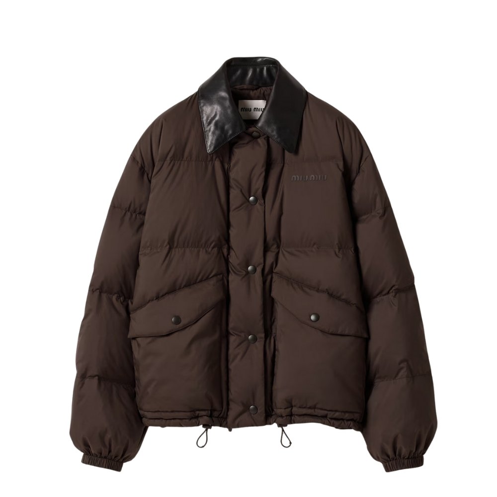 Miumiu Technical Ponge Cropped Down Jacket Brown Ml1107 15Wx F0192 S Ooo
