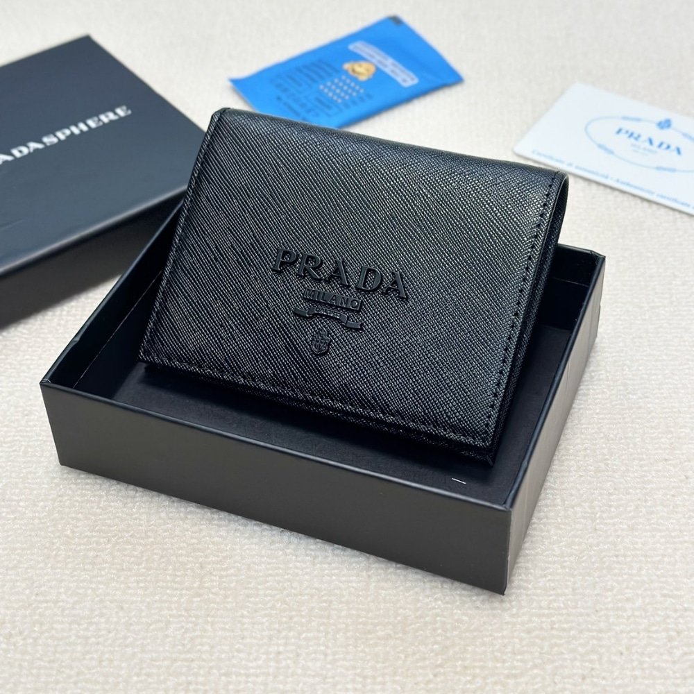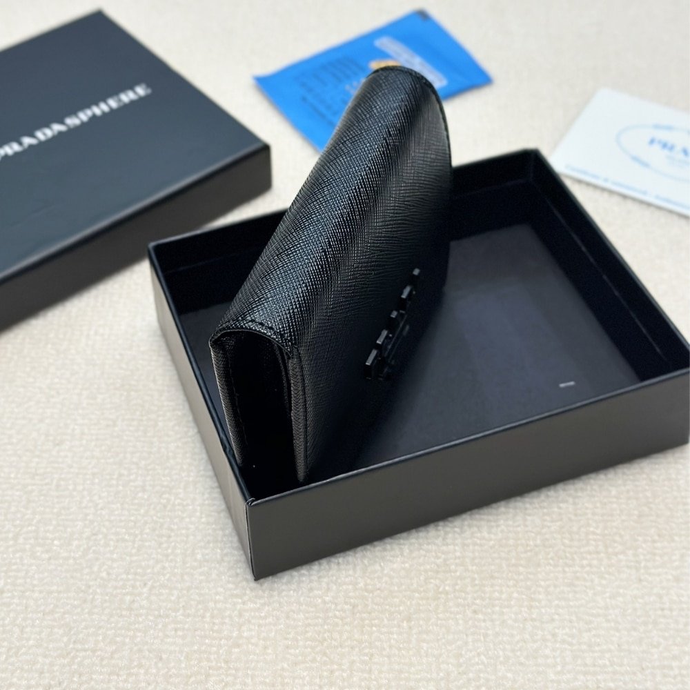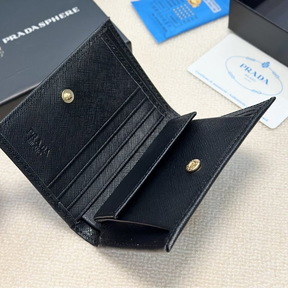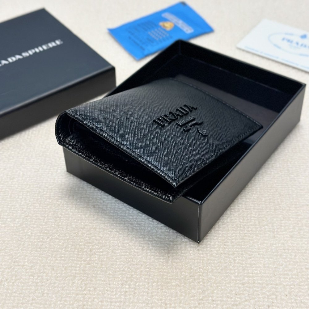 Prada Bifold Saffiano Leather Wallet Black 11Cm