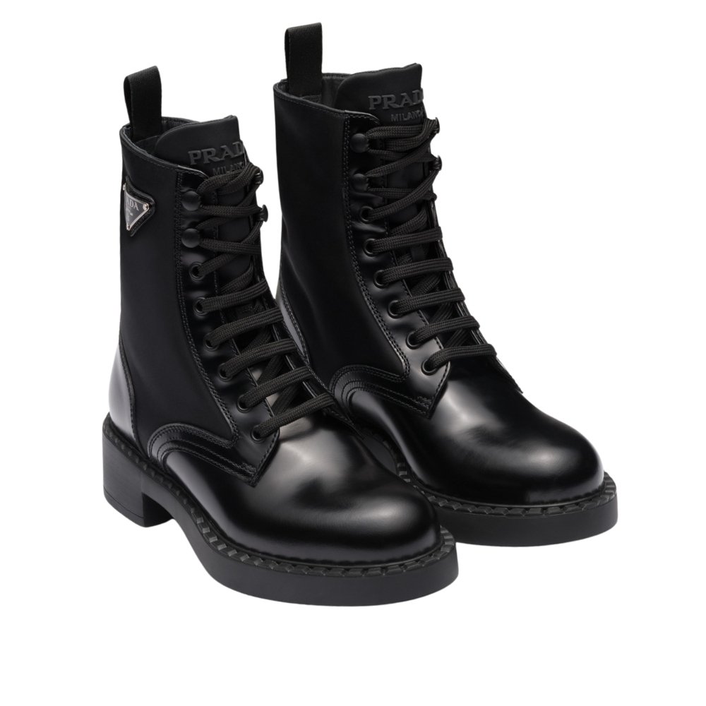 Prada Brushed Leather And Re Nylon Boots Black 1T782M 3Lf7 F0002 F B050