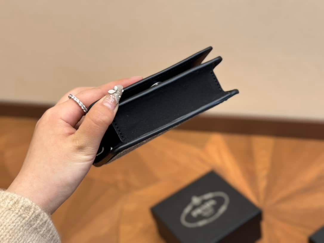 - Moiré and leather lining