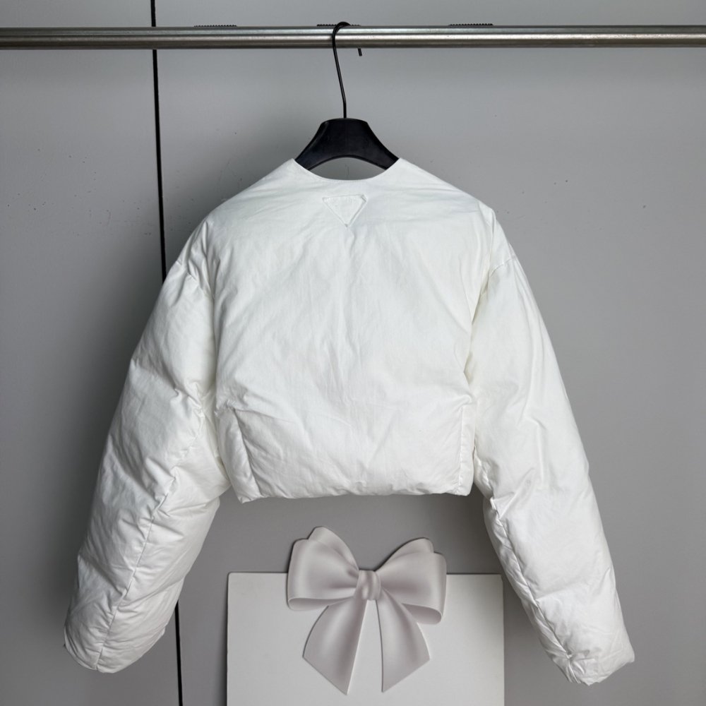 Prada Cropped Cotton Down Jacket White 23Aw Sgc376