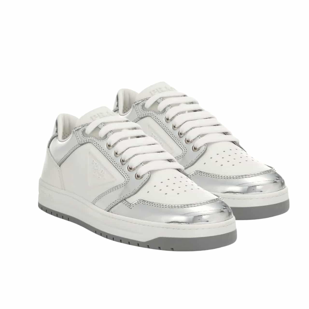 Prada District Leather Sneakers White Sliver 1E790M 3Lj6 F0J36