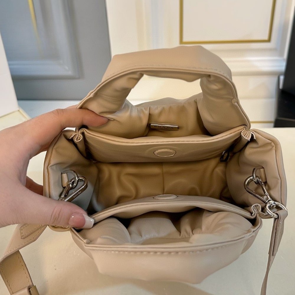 Prada Padded Soft Leather Bag Desert Beige 19Cm 1Ba359 2Dyi F0F24 V Ovo