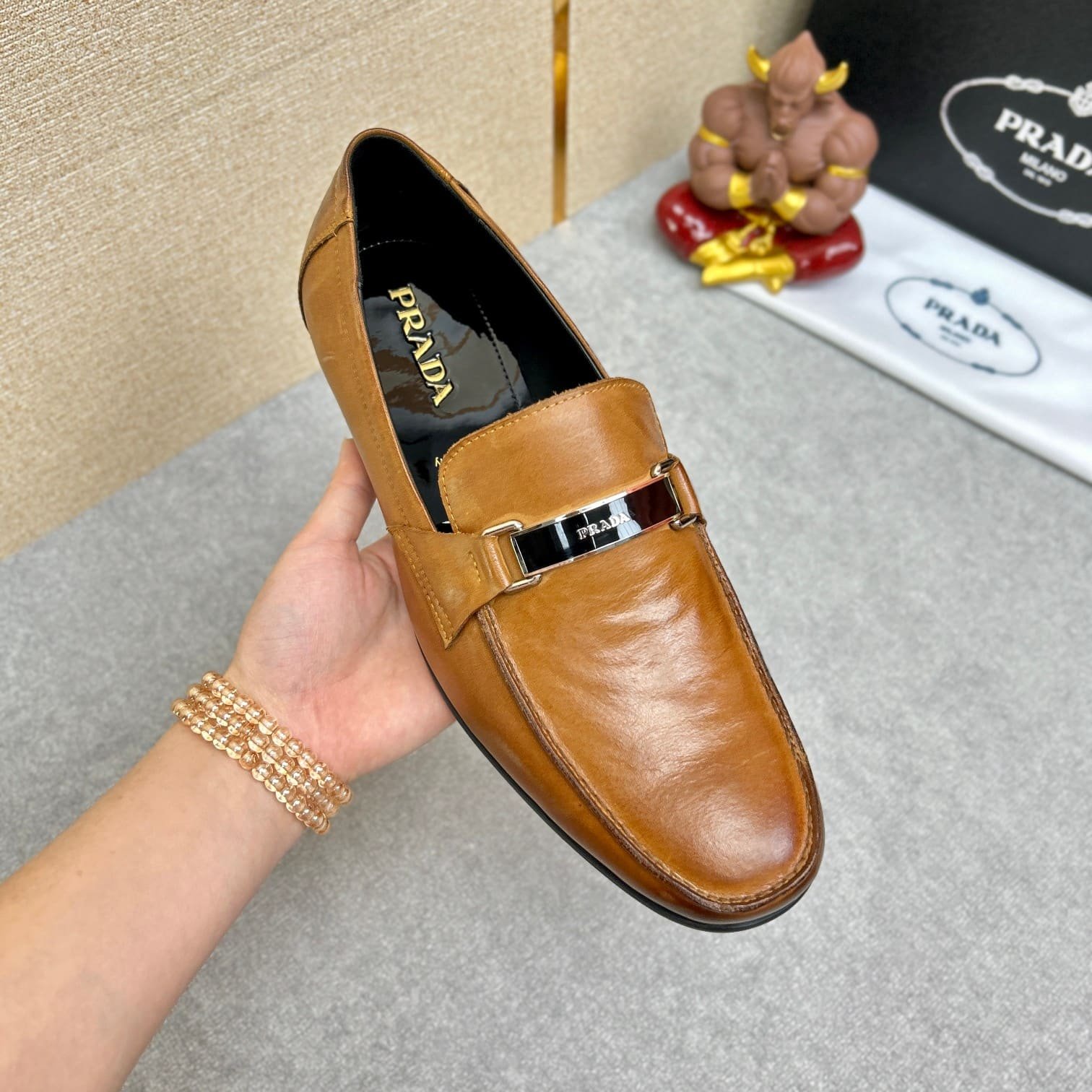 Prada Brushed Leather Loafer Plate Bit Logo Brown