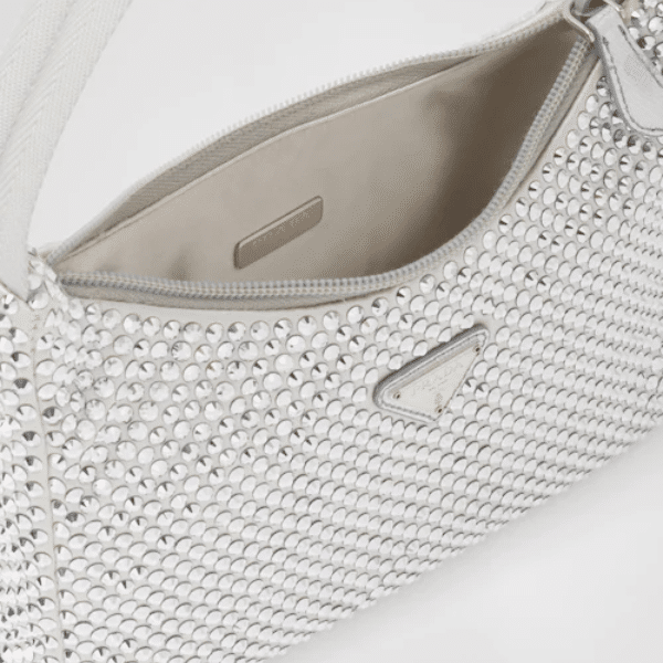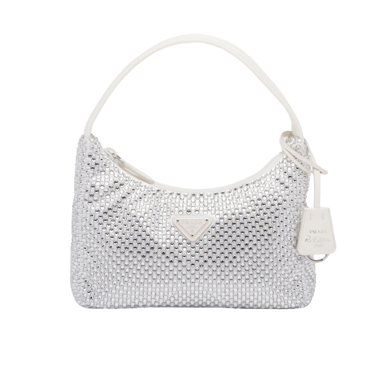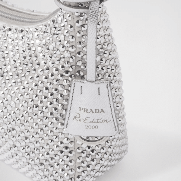 Prada Satin Mini Bag With Artificial Crystals Silver 21Cm 1Ne515 2Awl F0118