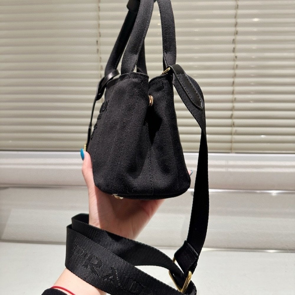 Prada Small Cotton Canvas Handbag Black 22Cm 1Bg464 2Cya F0002 V 8Om