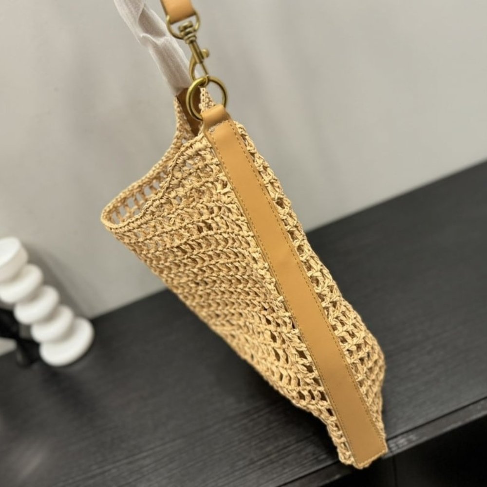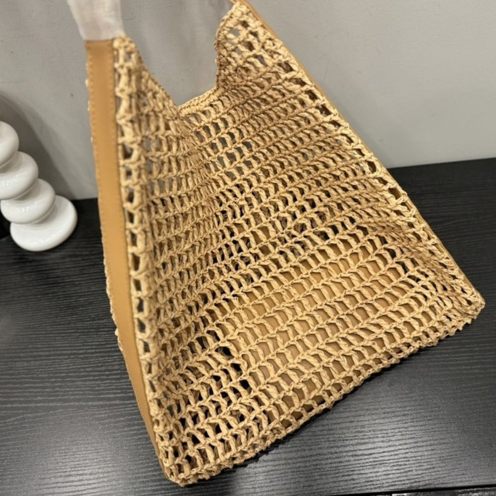 Saint Laurent Oxalis In Raffia Crochet And Leather Vintage Brown 41Cm 773984Gaaeb9718